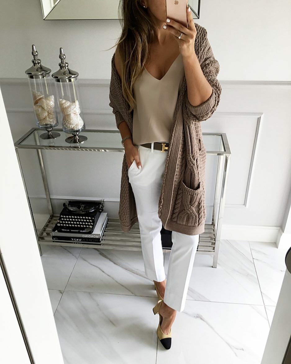 Стильный офисный лук для девушки осень