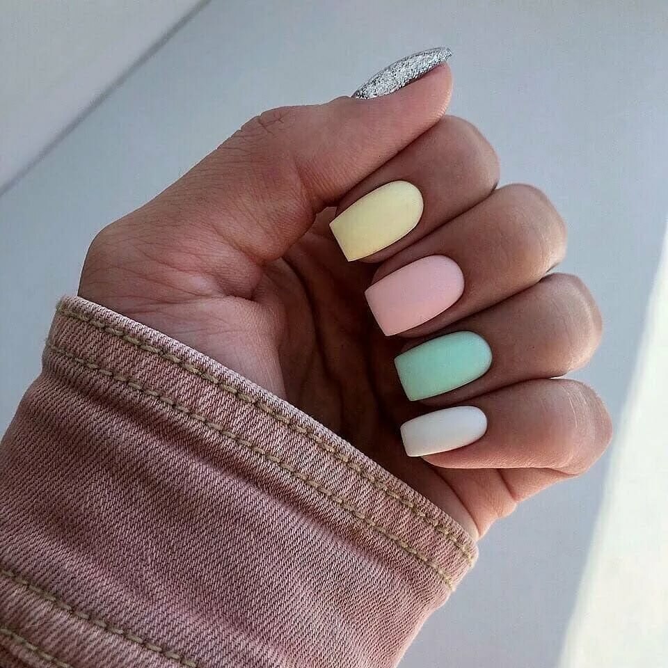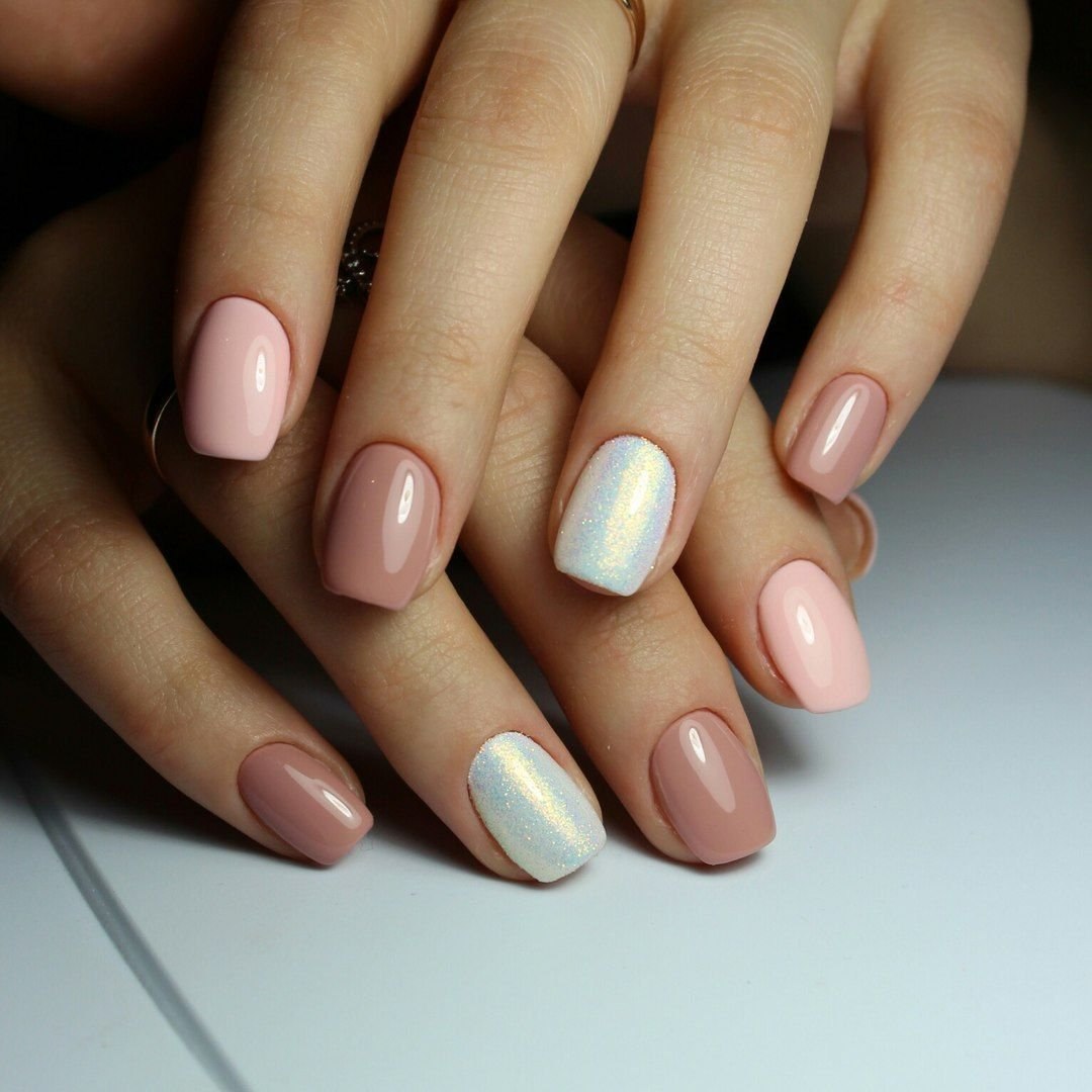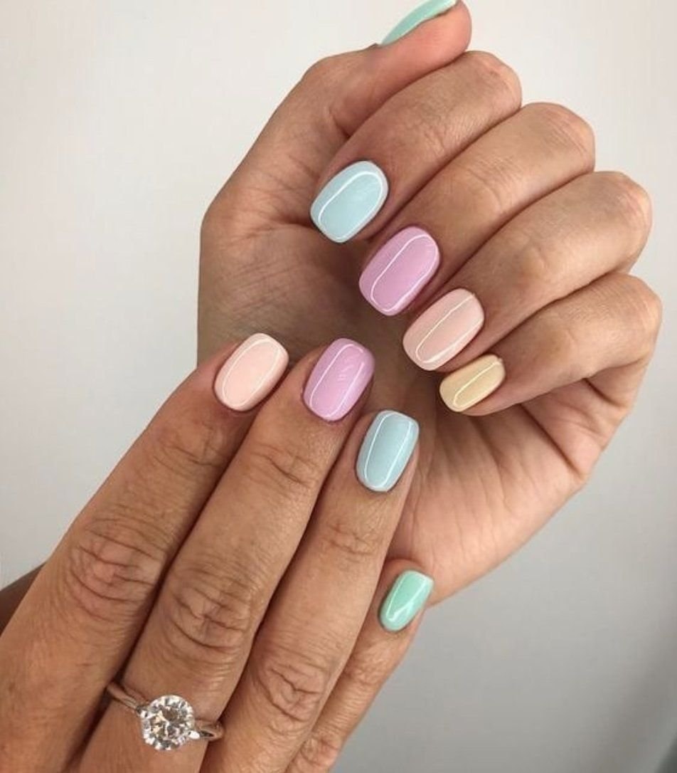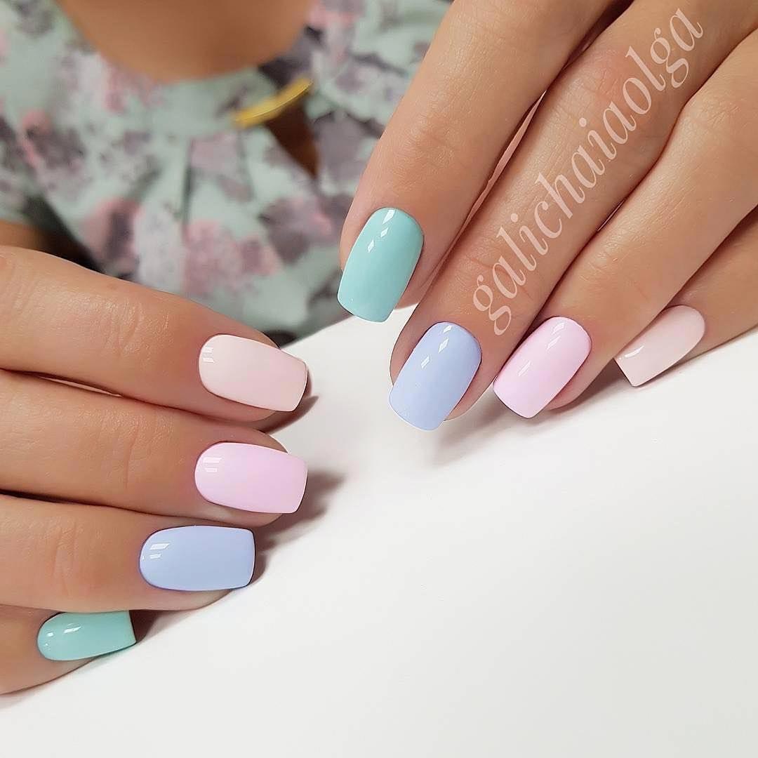Маникюр шеллак на короткие ногти пастельных оттенков