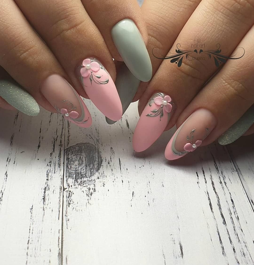 Маникюр на миндальные ногти Весна