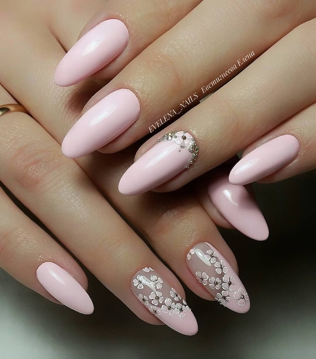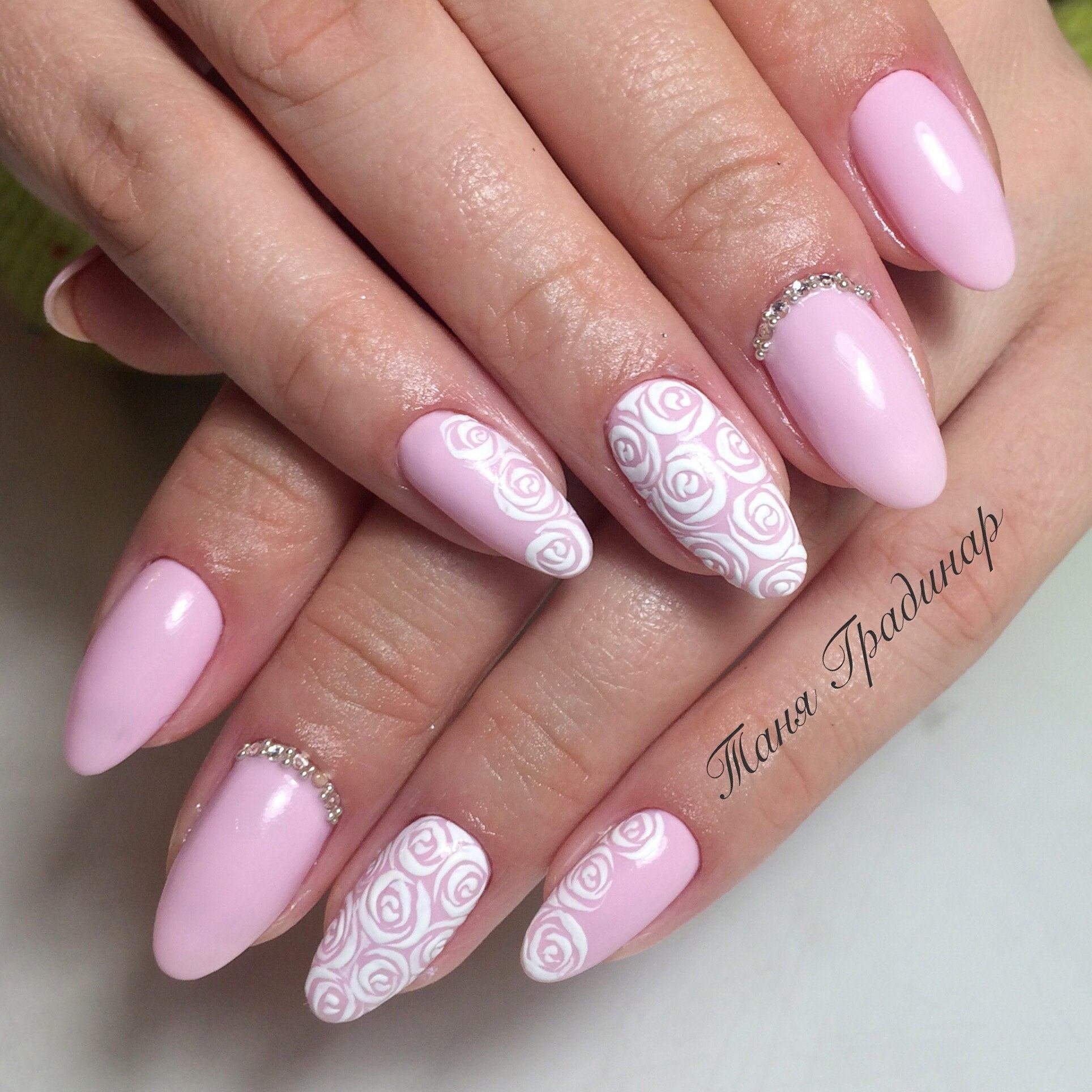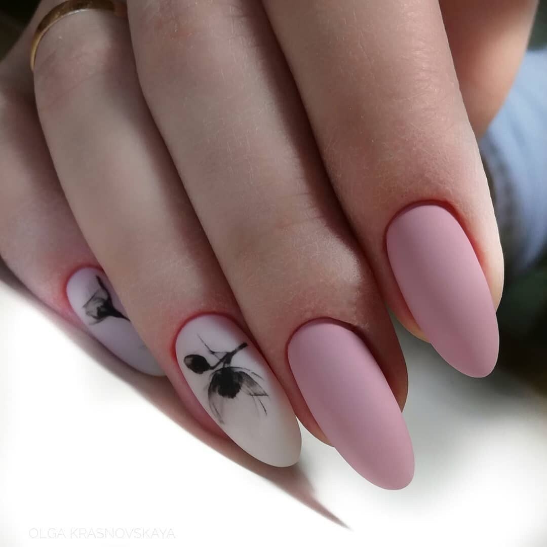 Ногти миндаль нежные с рисунком