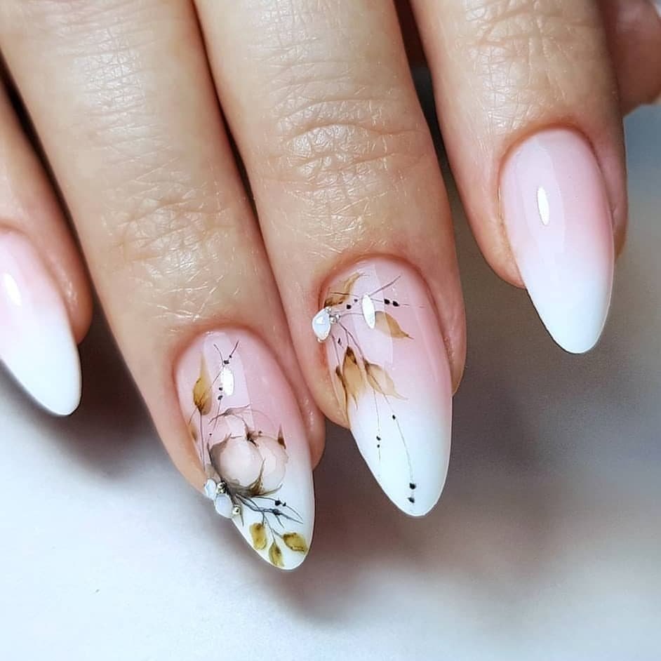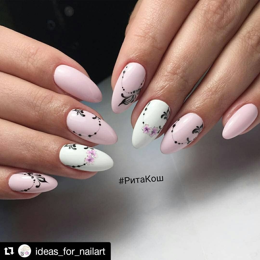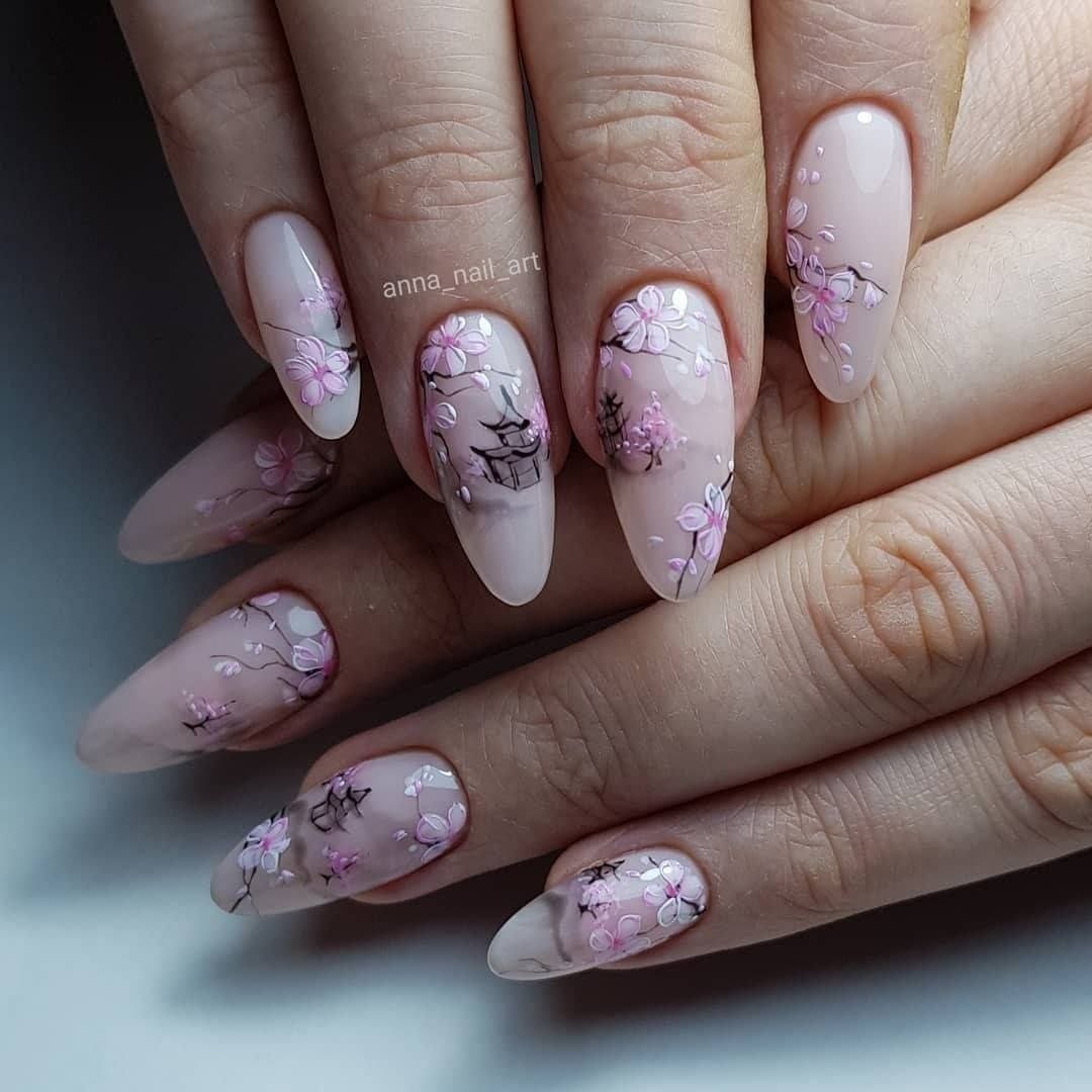 Ногти миндаль нежные с рисунком
