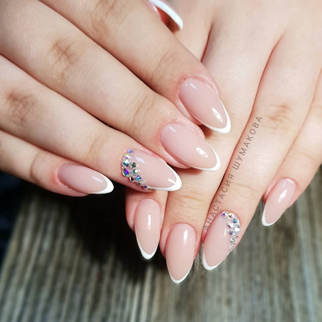 Маникюр нюд с френчем на миндаль