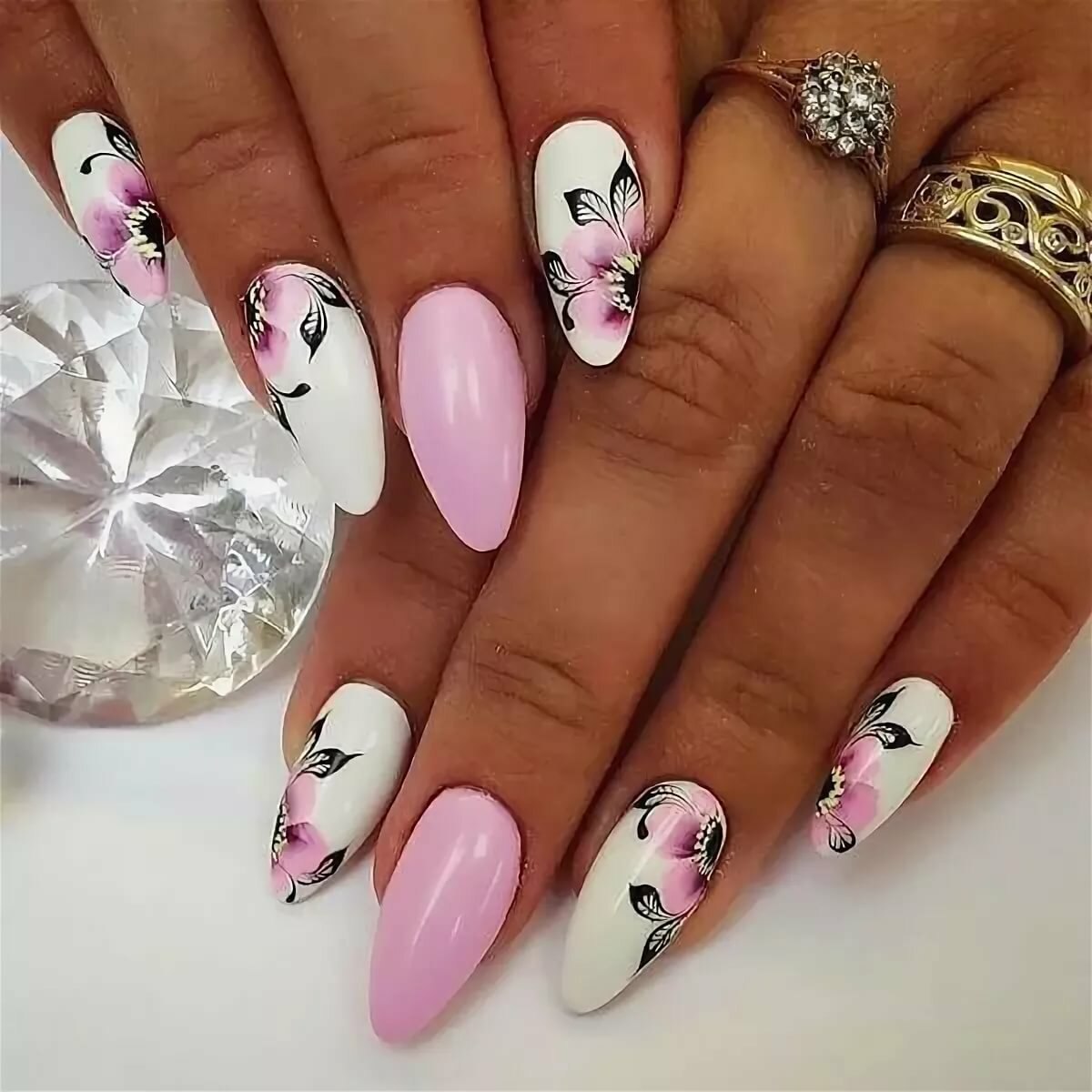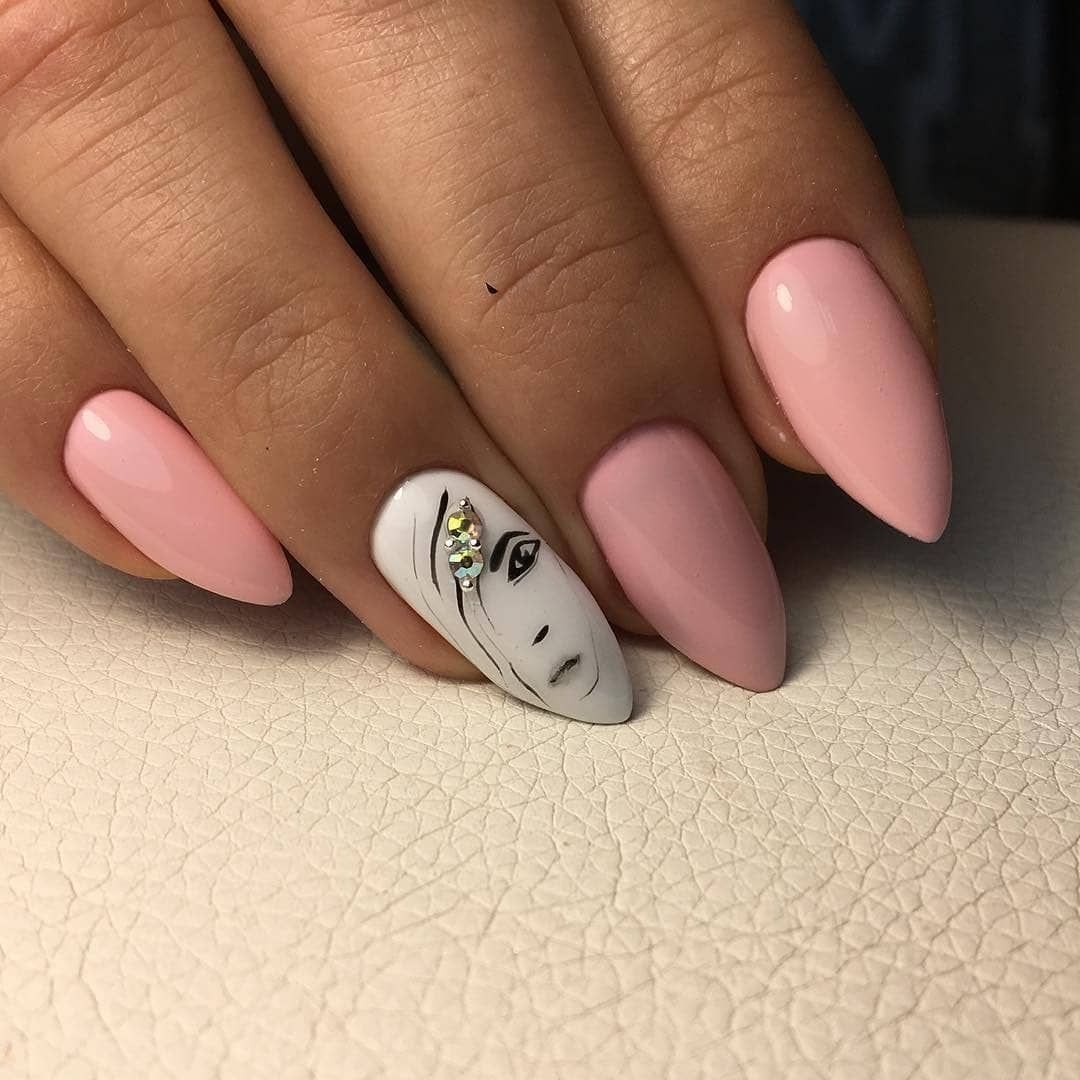 Маникюр на миндальные ногти с рисунком