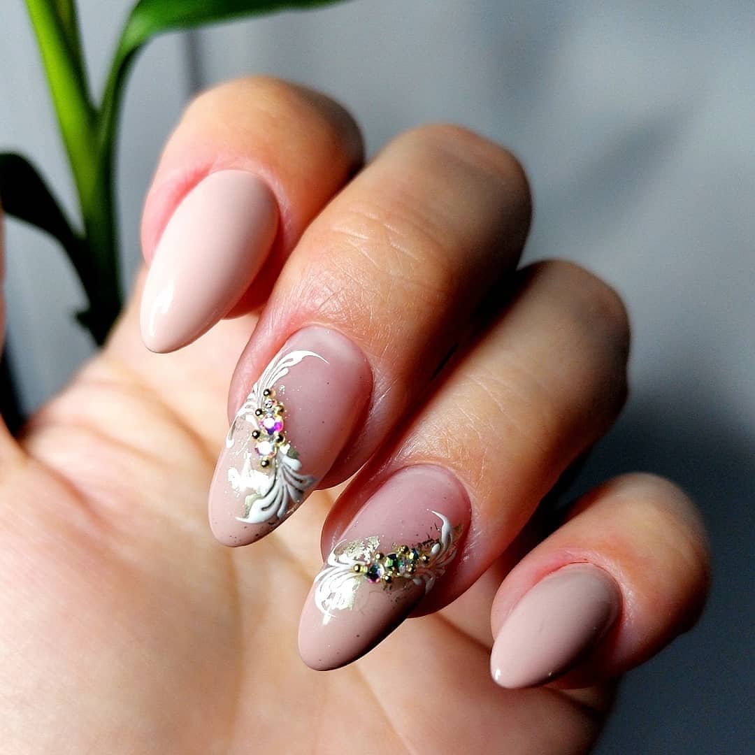 Нюдовый маникюр миндаль модный