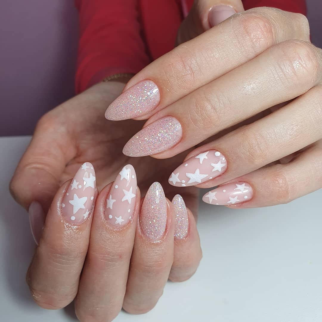 Маникюр дизайн нежный с блёстками