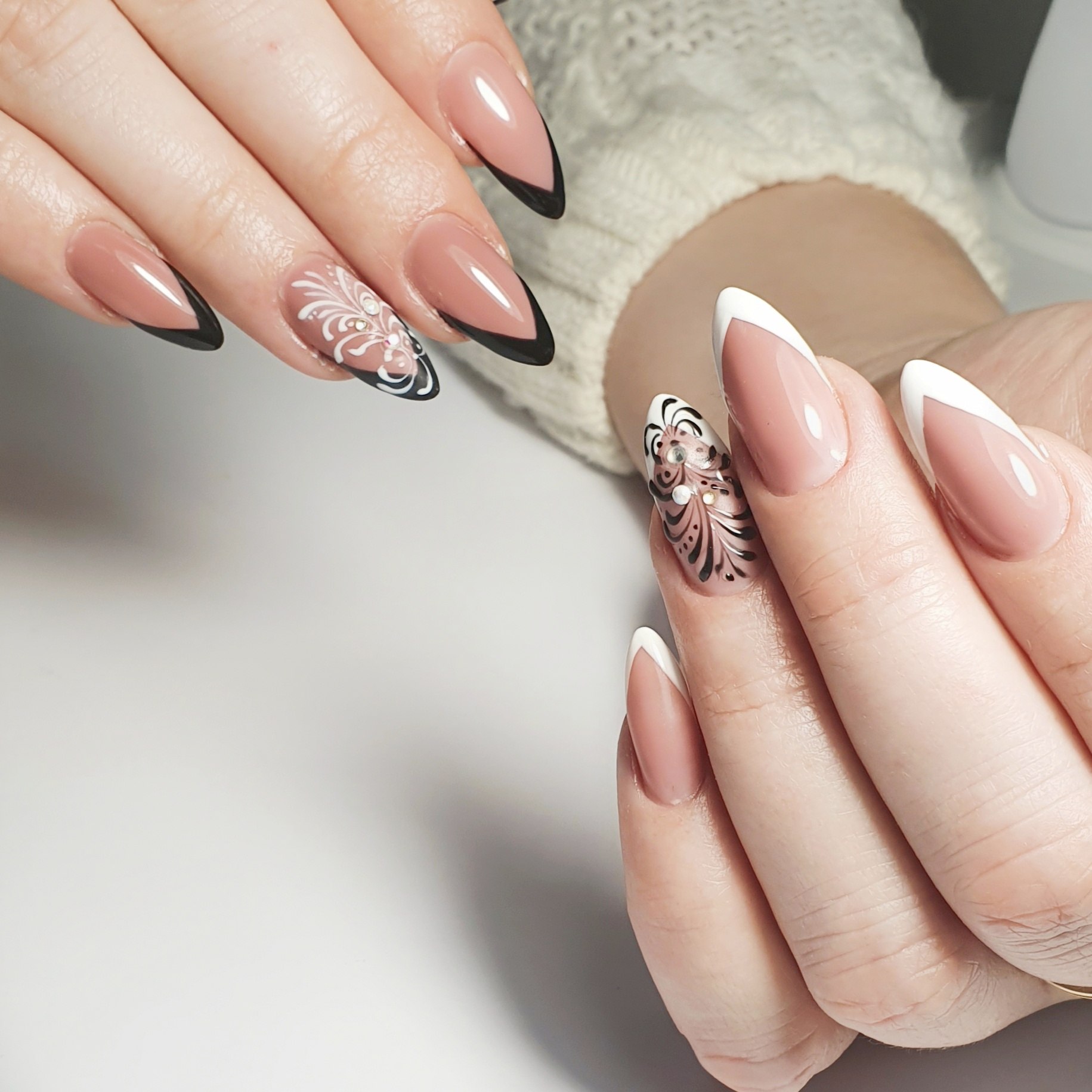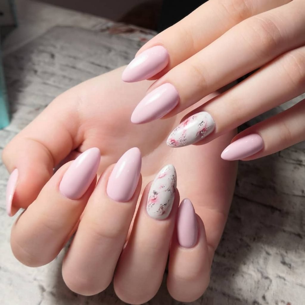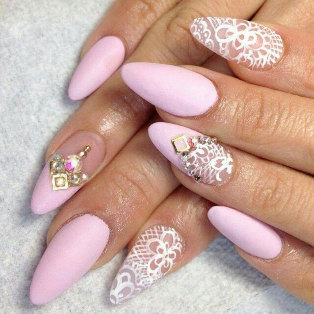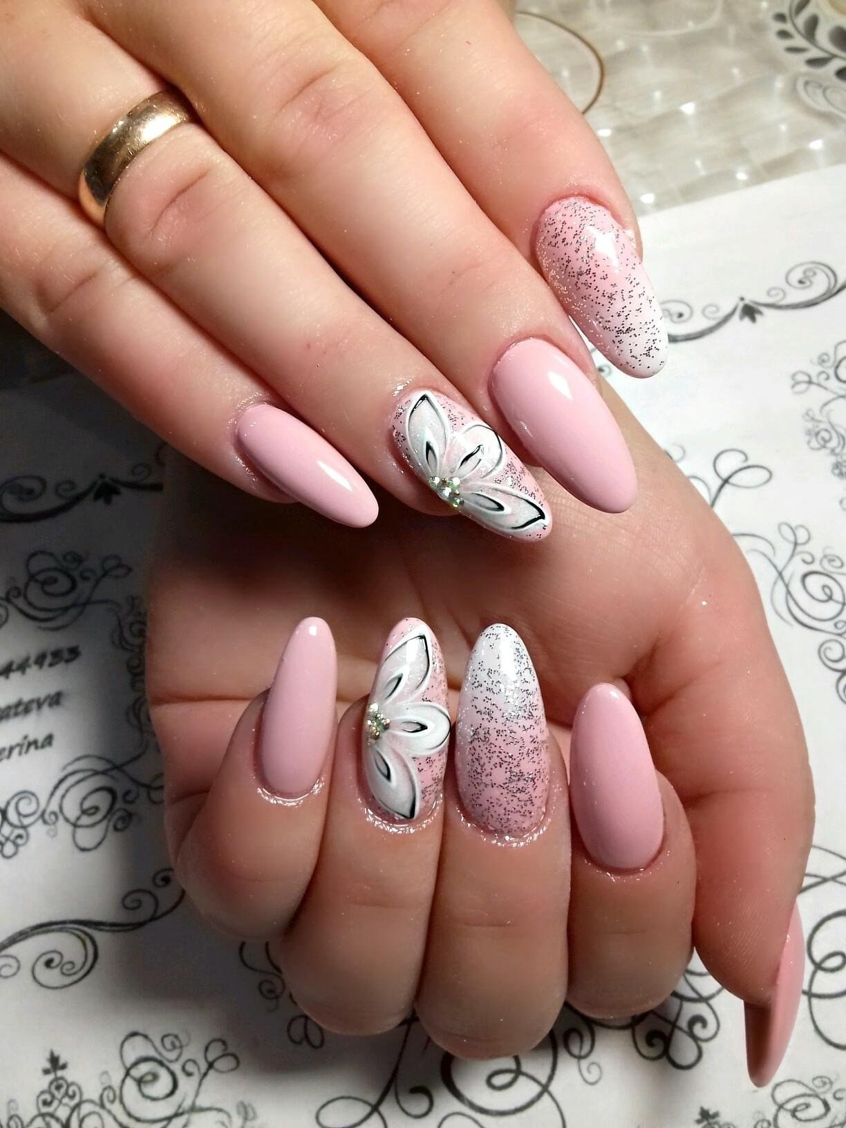 Нежный маникюр на острые ногти