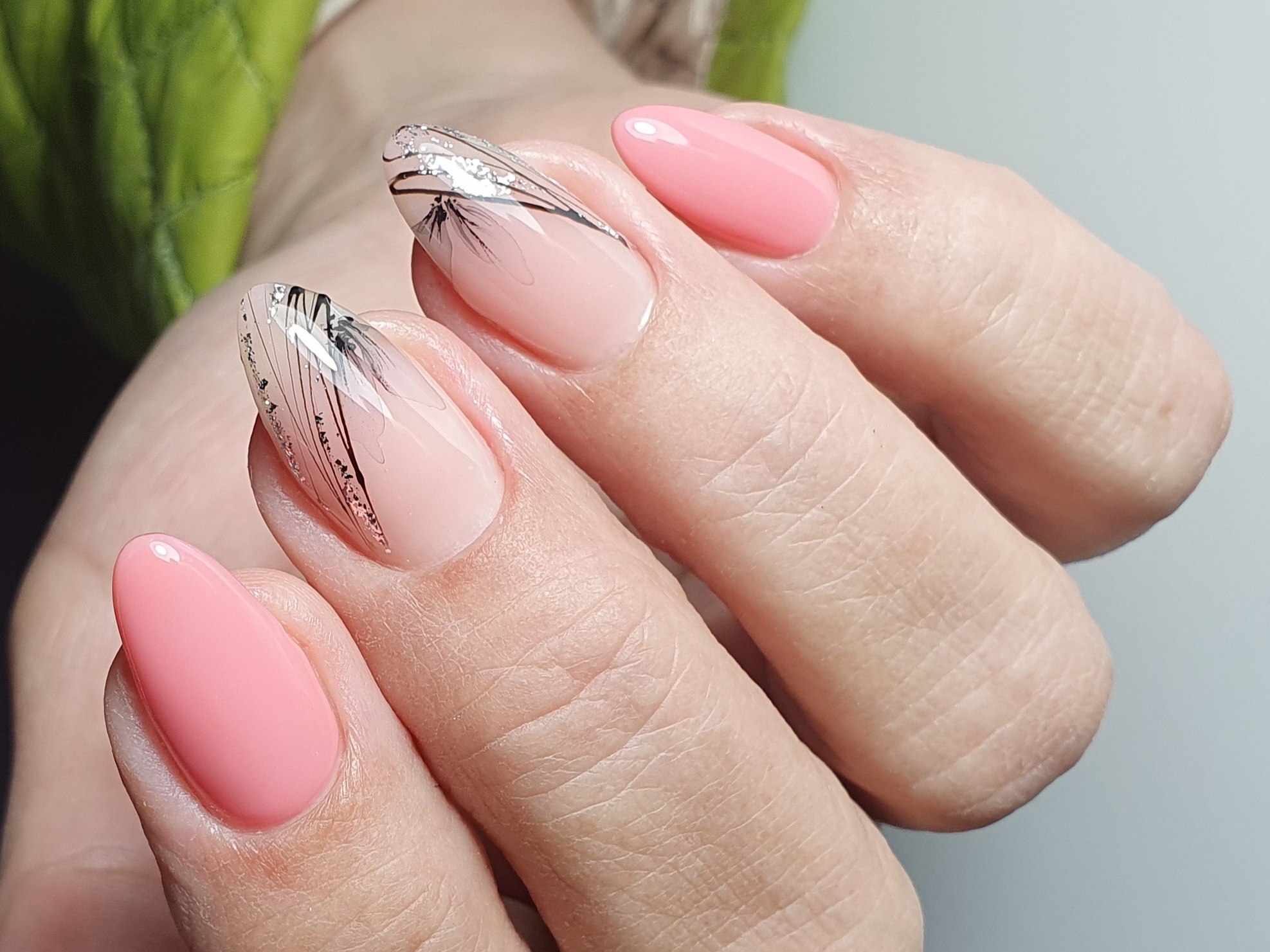 Маникюр нюд с фольгой
