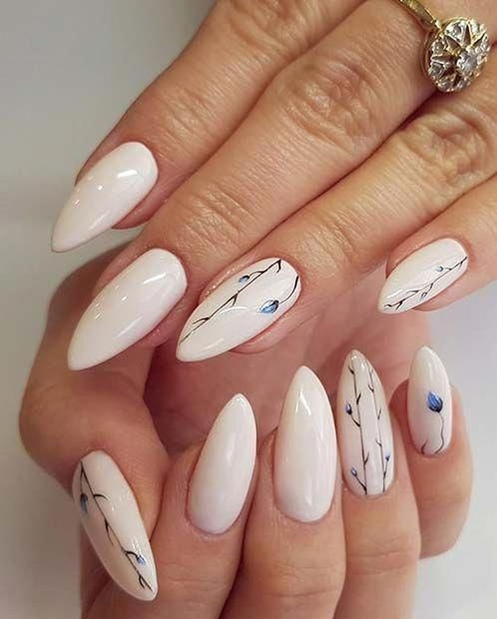 Ногти миндаль с веточкой