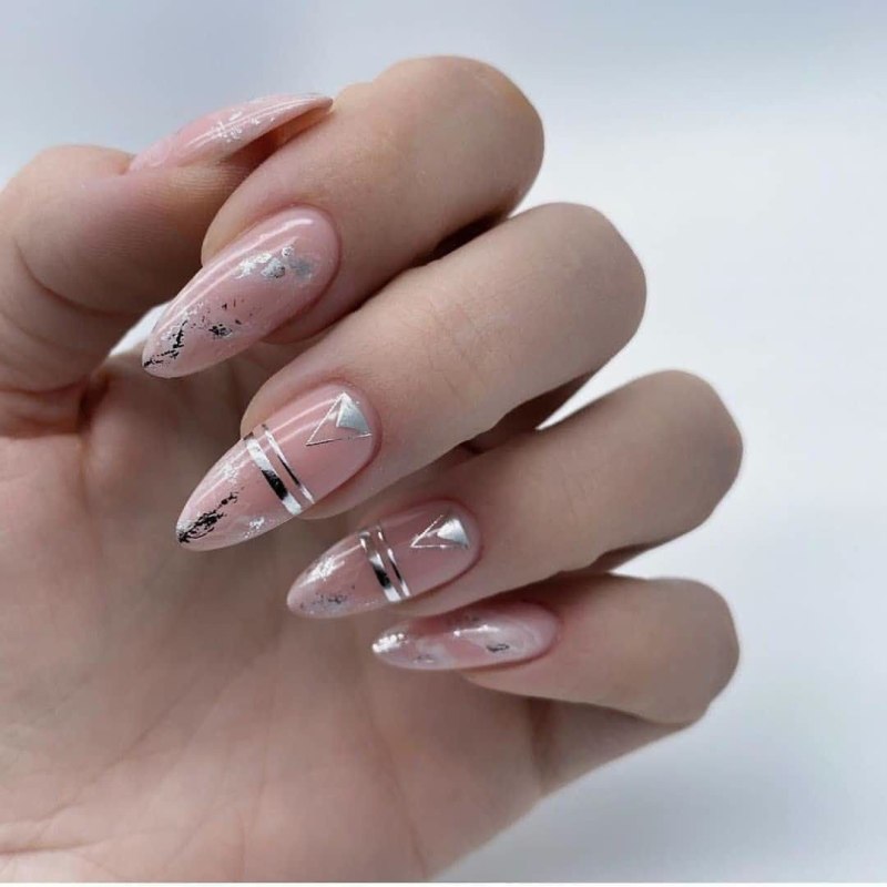 Нюдовый маникюр с геометрией миндаль