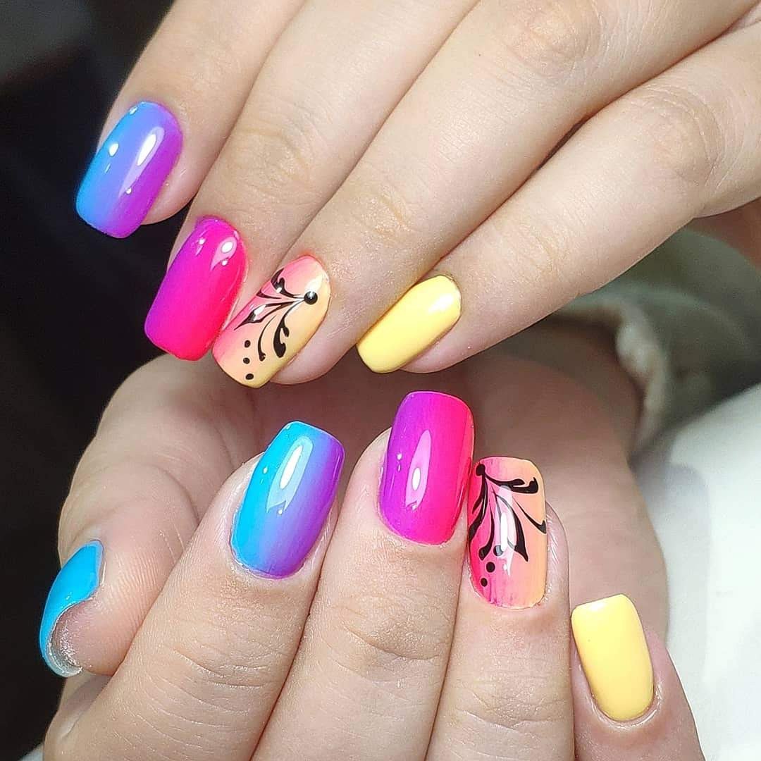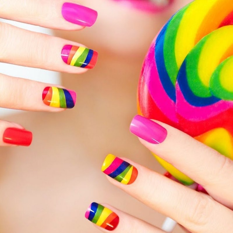 Яркие разноцветные ногти