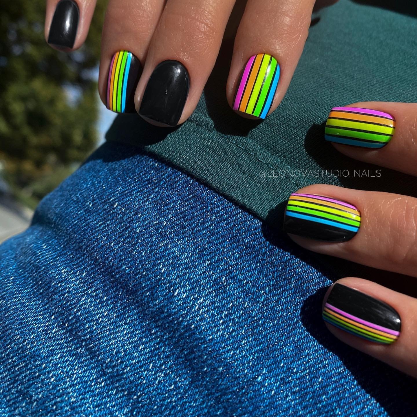 Ногти с разноцветными полосками
