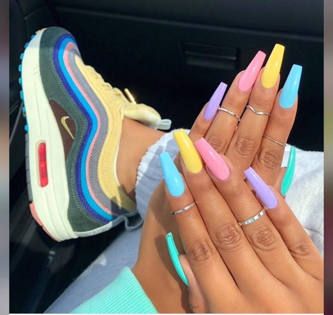 Разноцветные длинные ногти