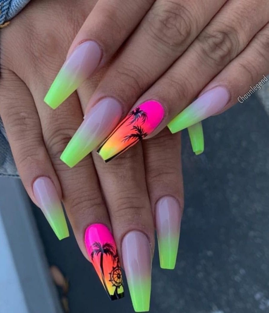 Яркие ногти с пальмами