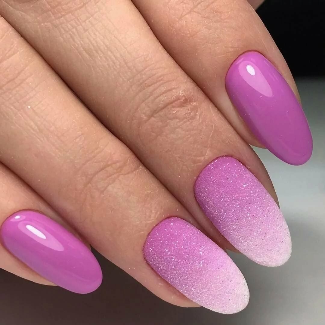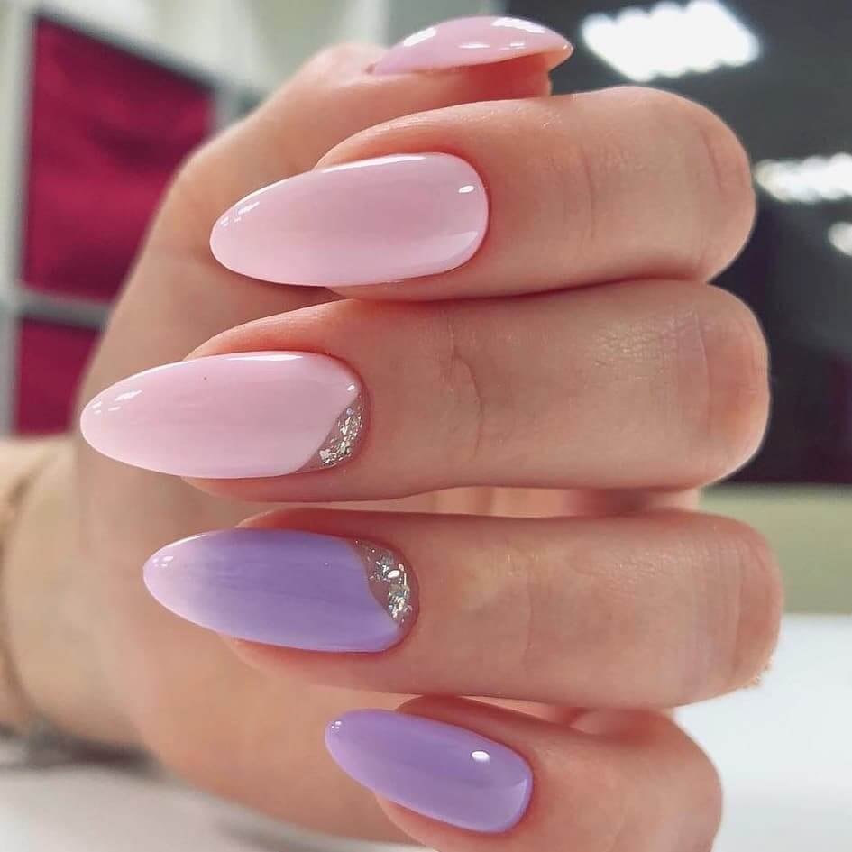 Маникюр сиреневый с розовым