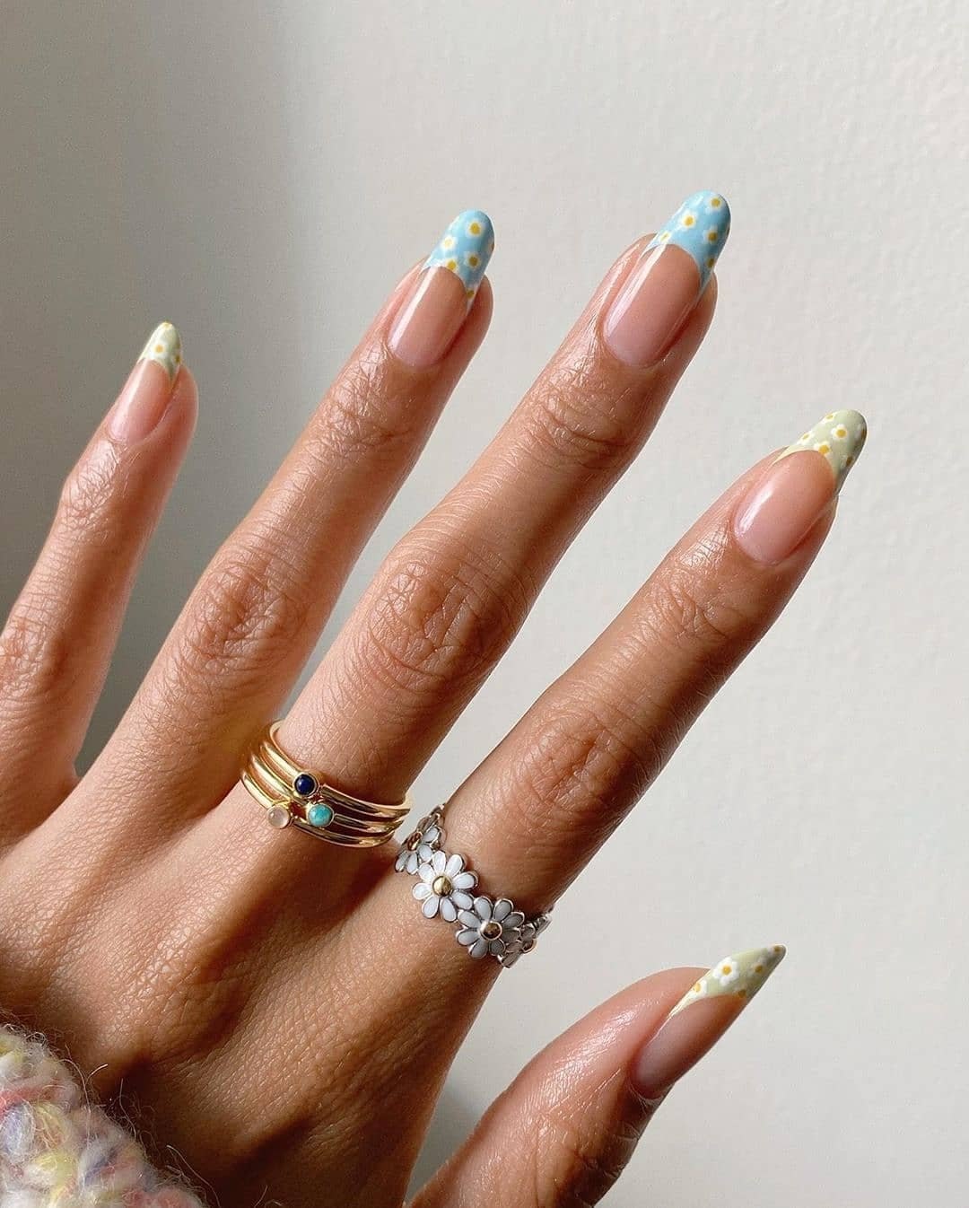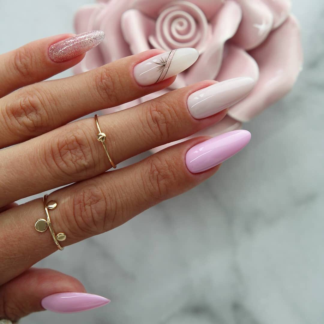 Маникюр Весна на миндалевидных ногтях