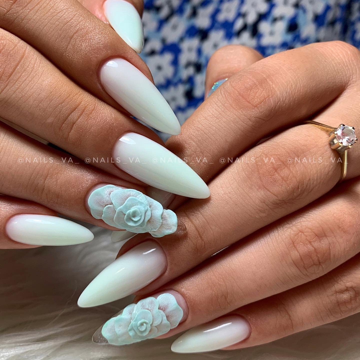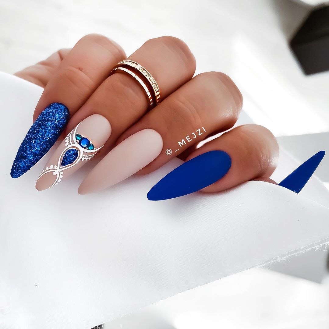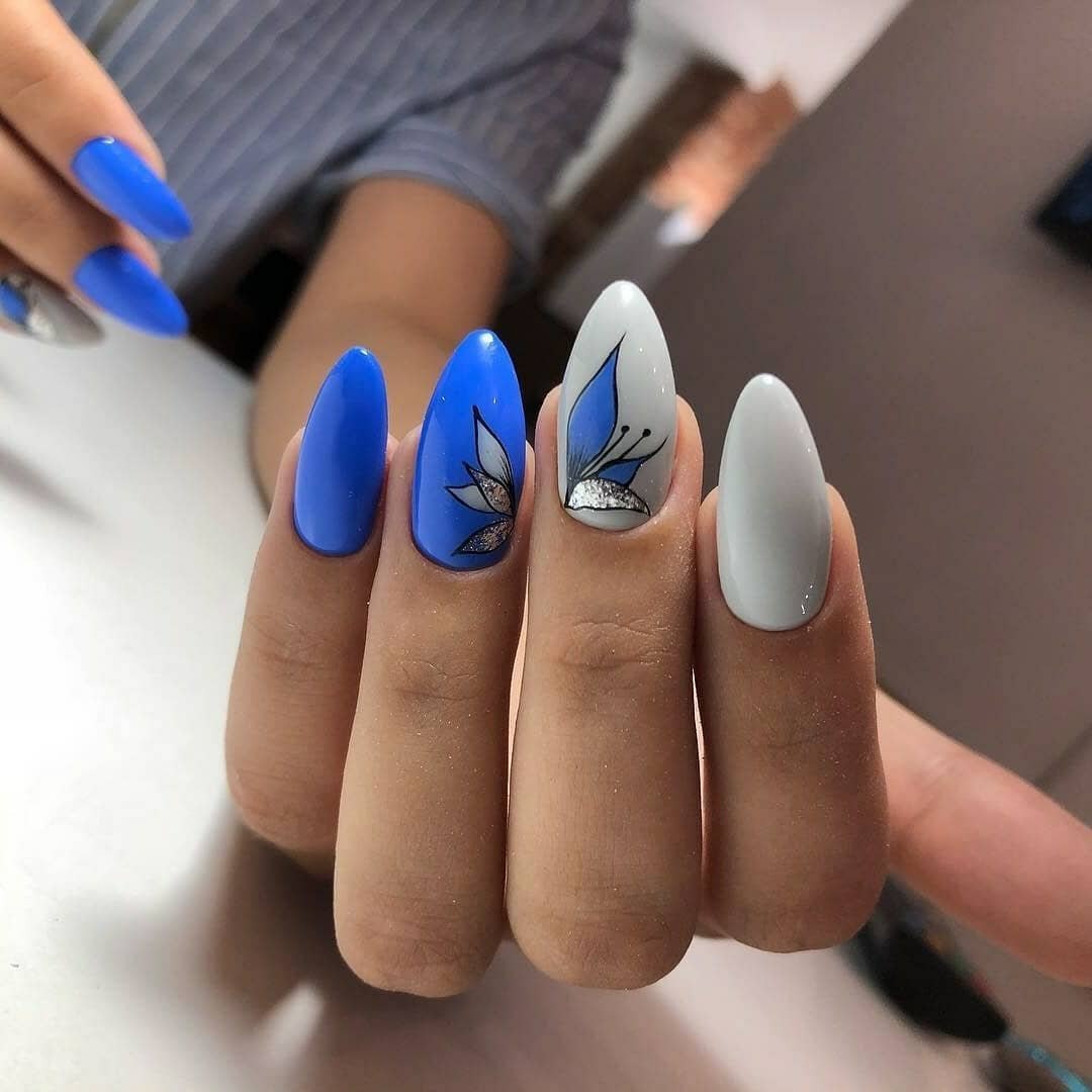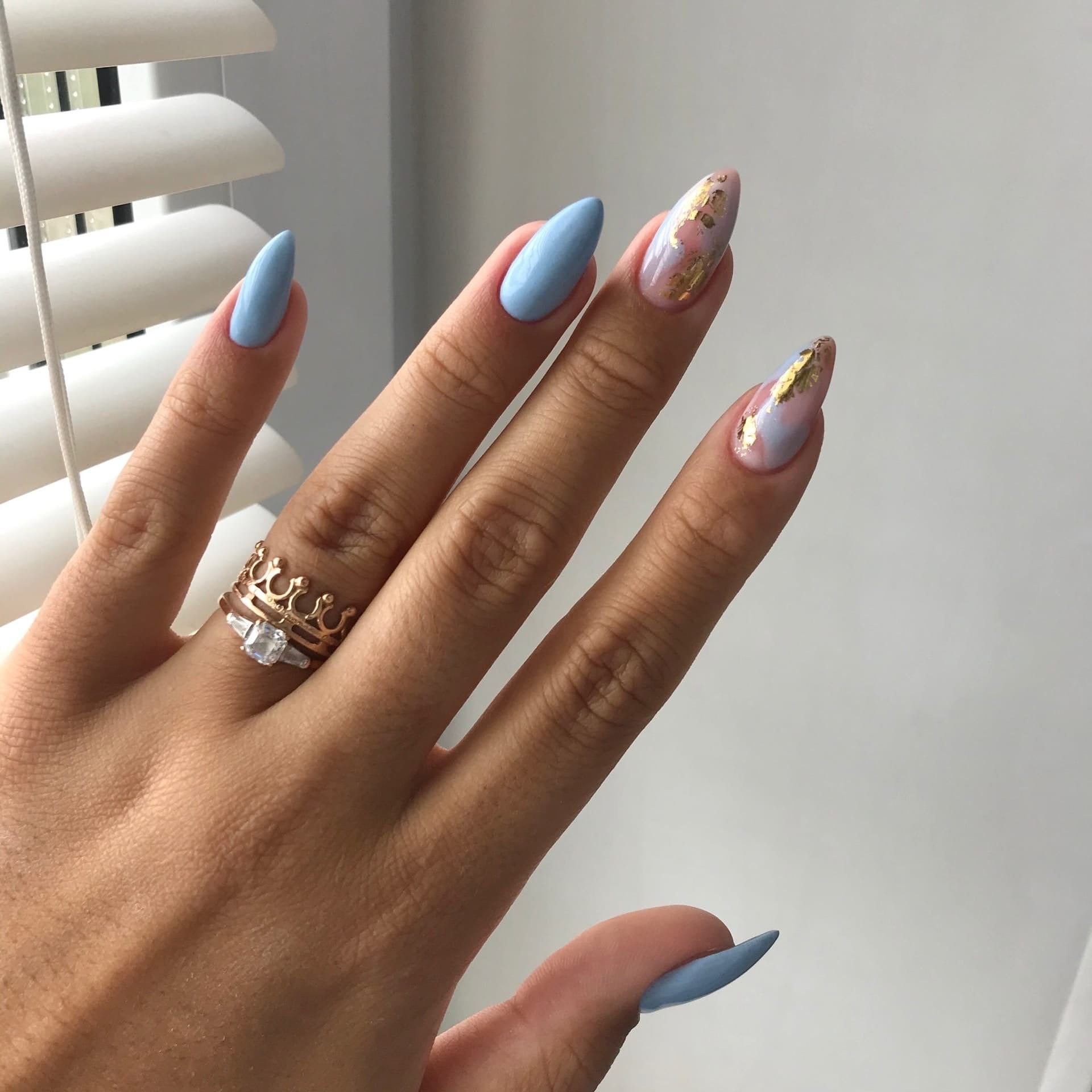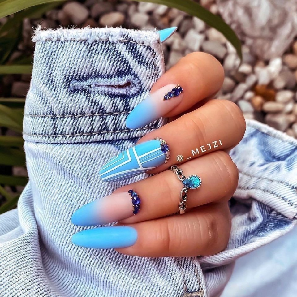 Маникюр в голубых тонах на длинные ногти