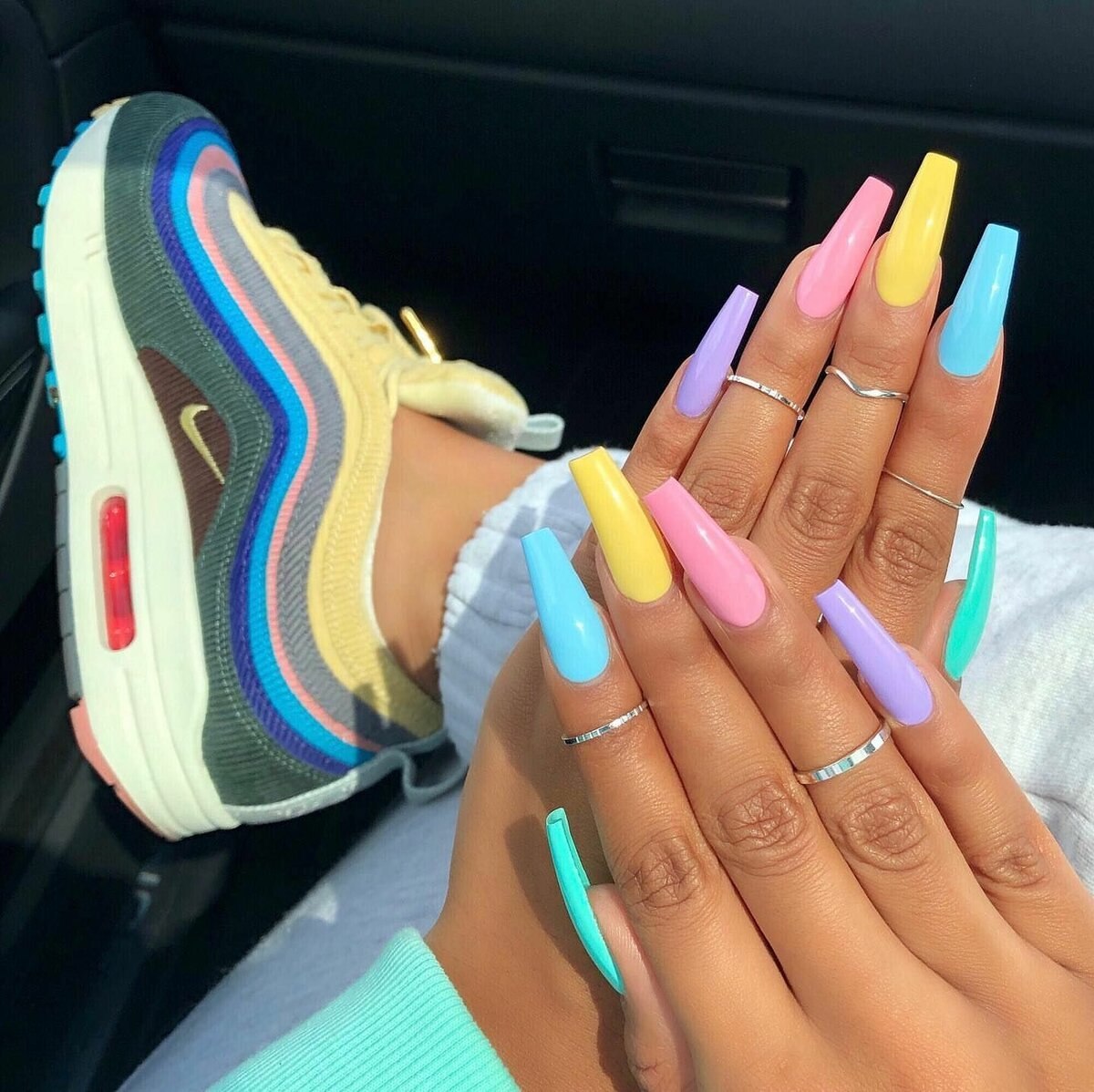 Разноцветные длинные ногти