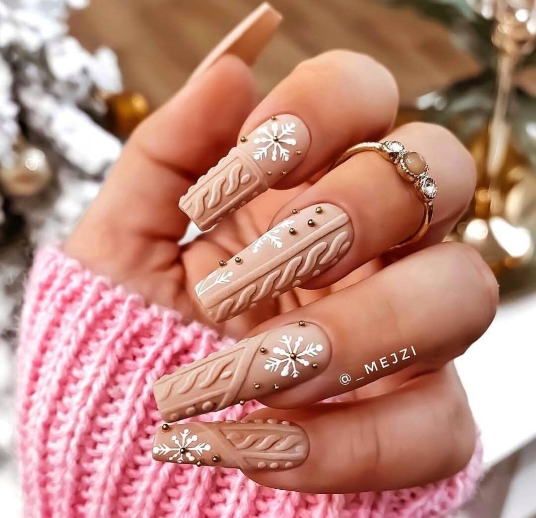 Зимний маникюр на длинные ногти