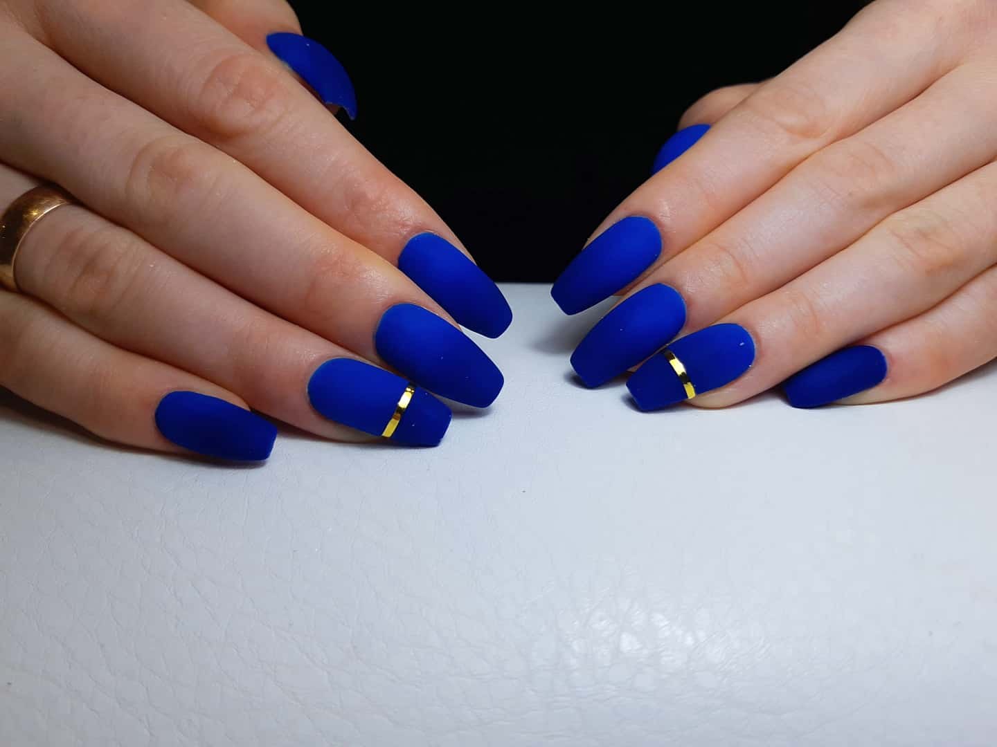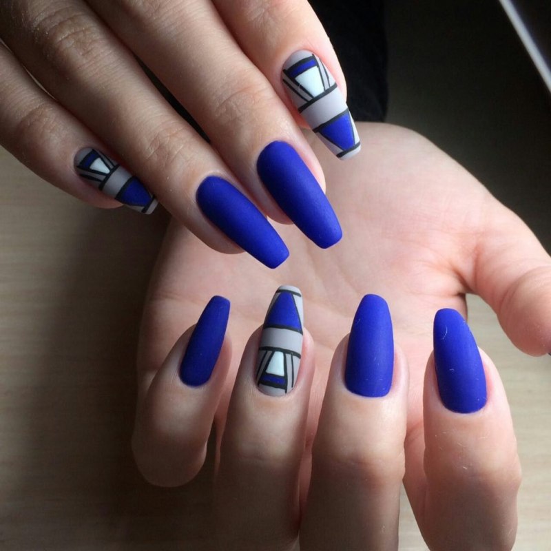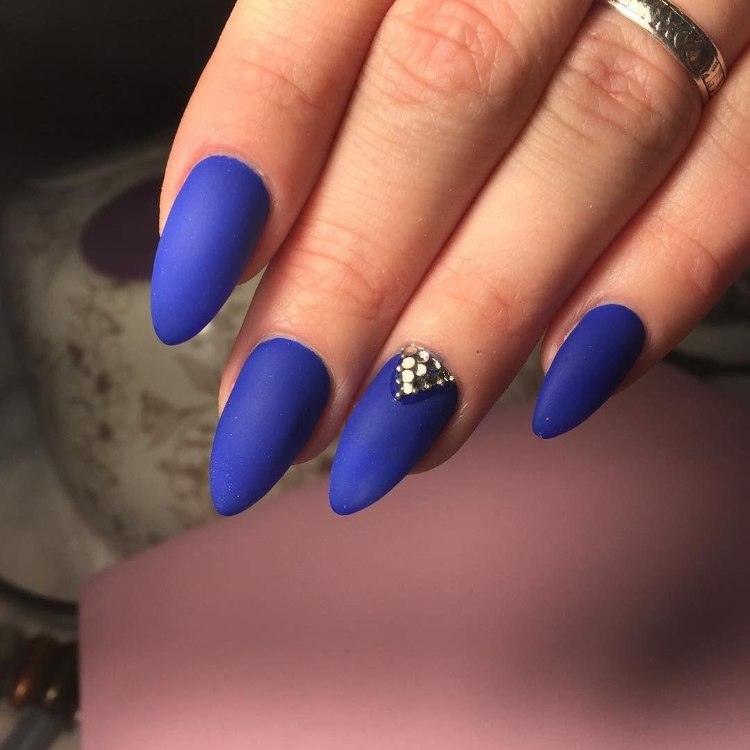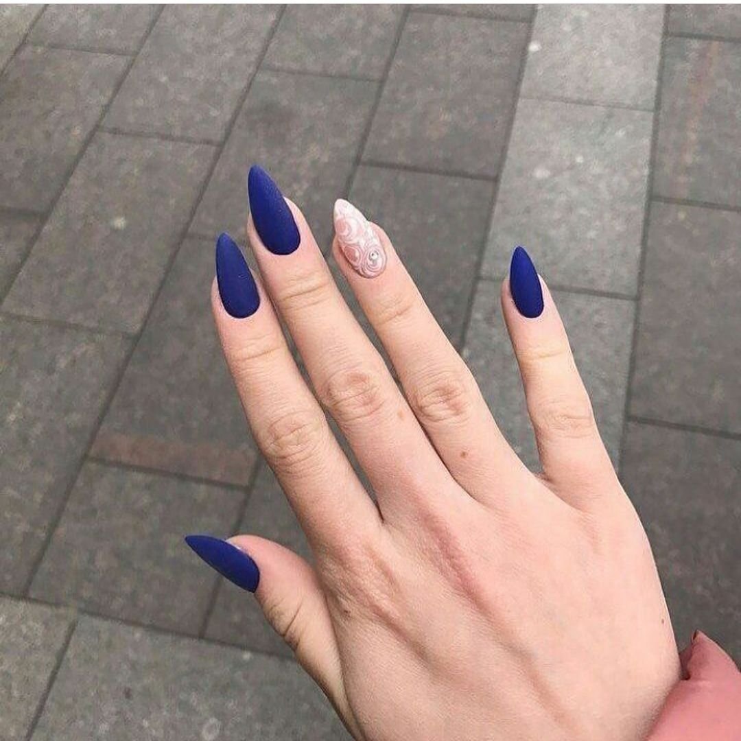 Синий матовый маникюр на длинные ногти