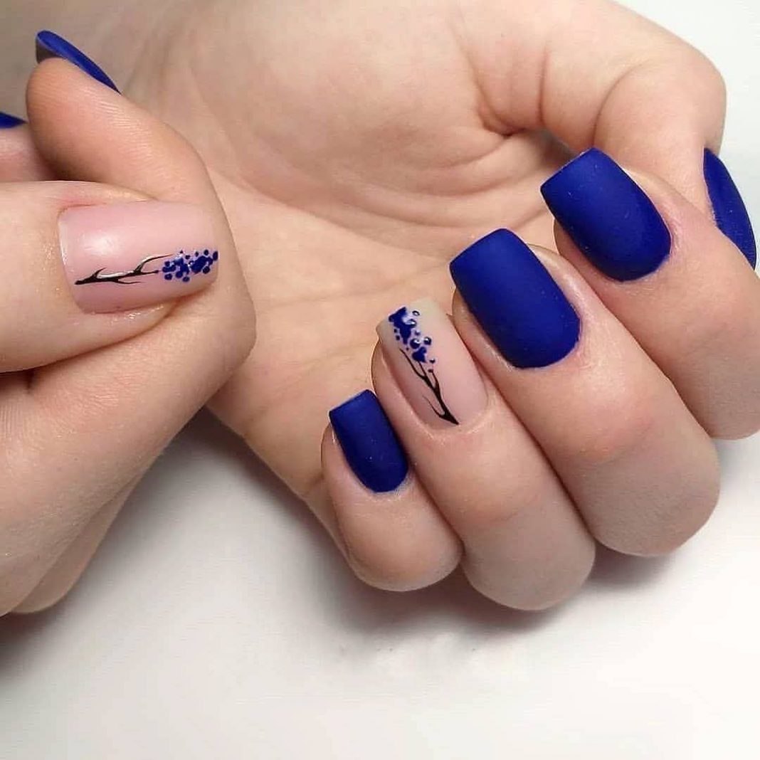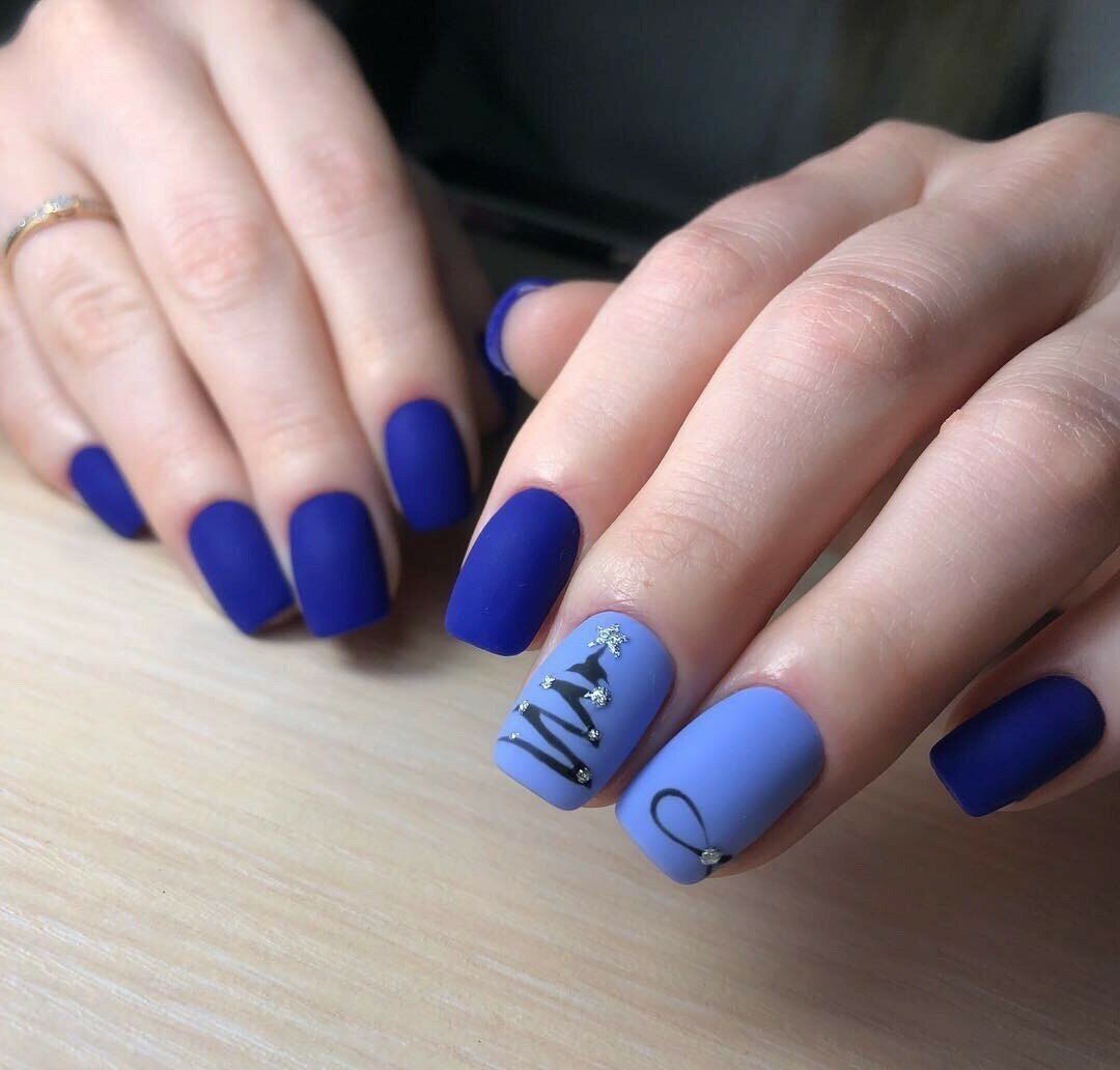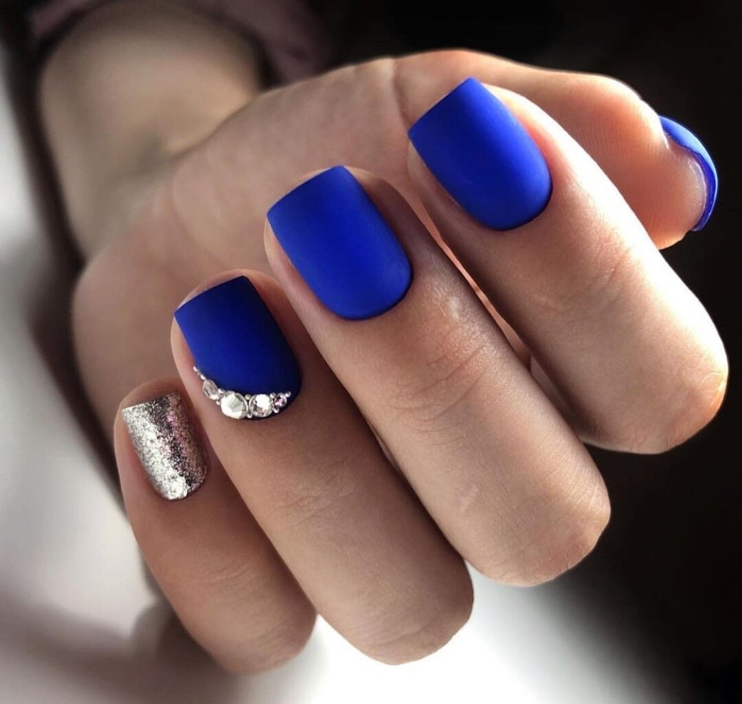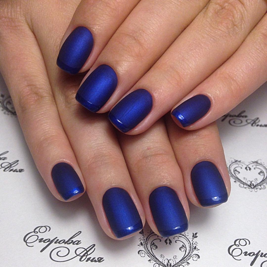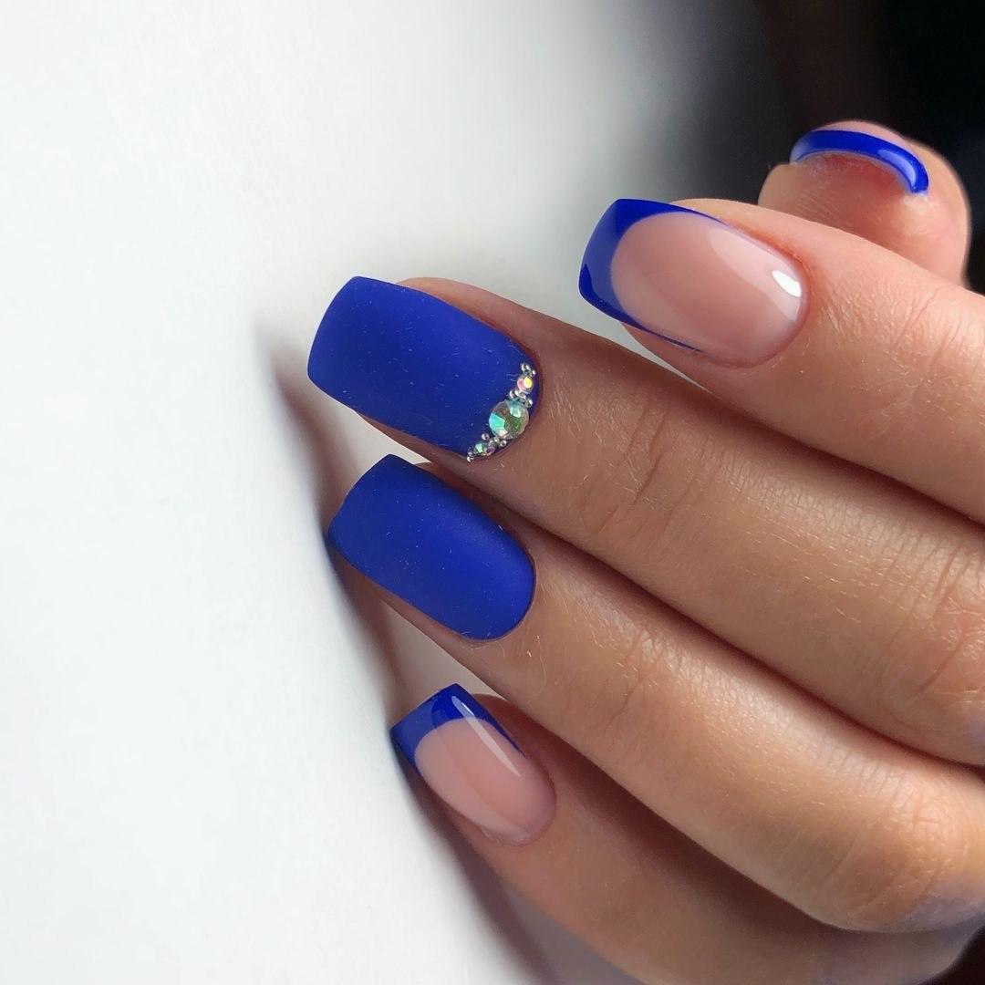 Модный маникюр с синим матовым