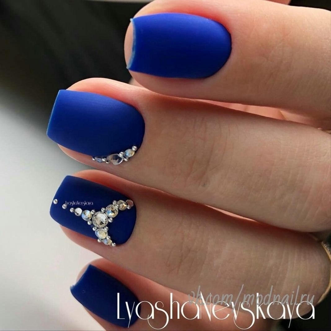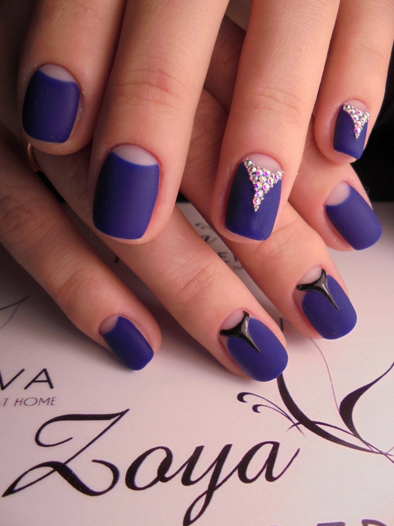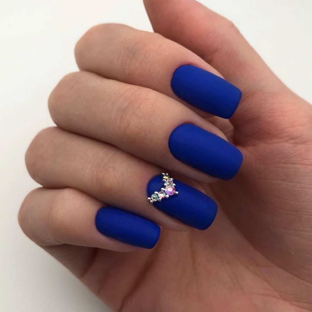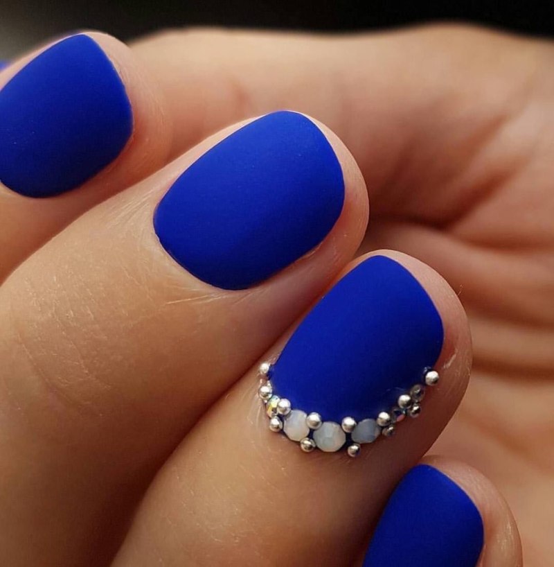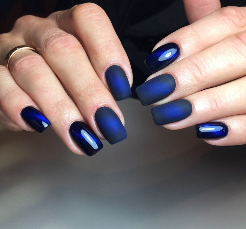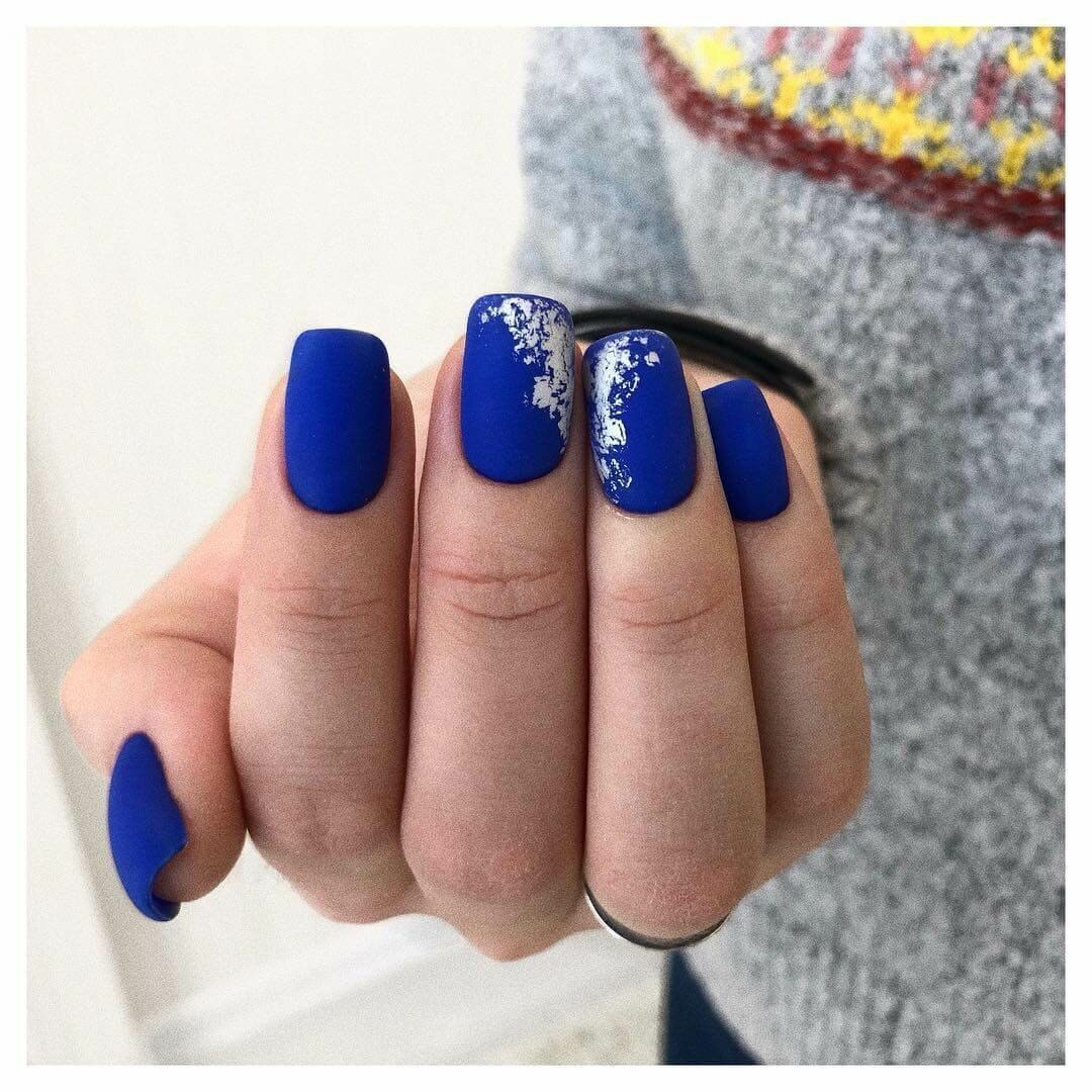 Модный маникюр с синим матовым
