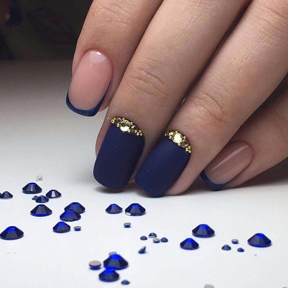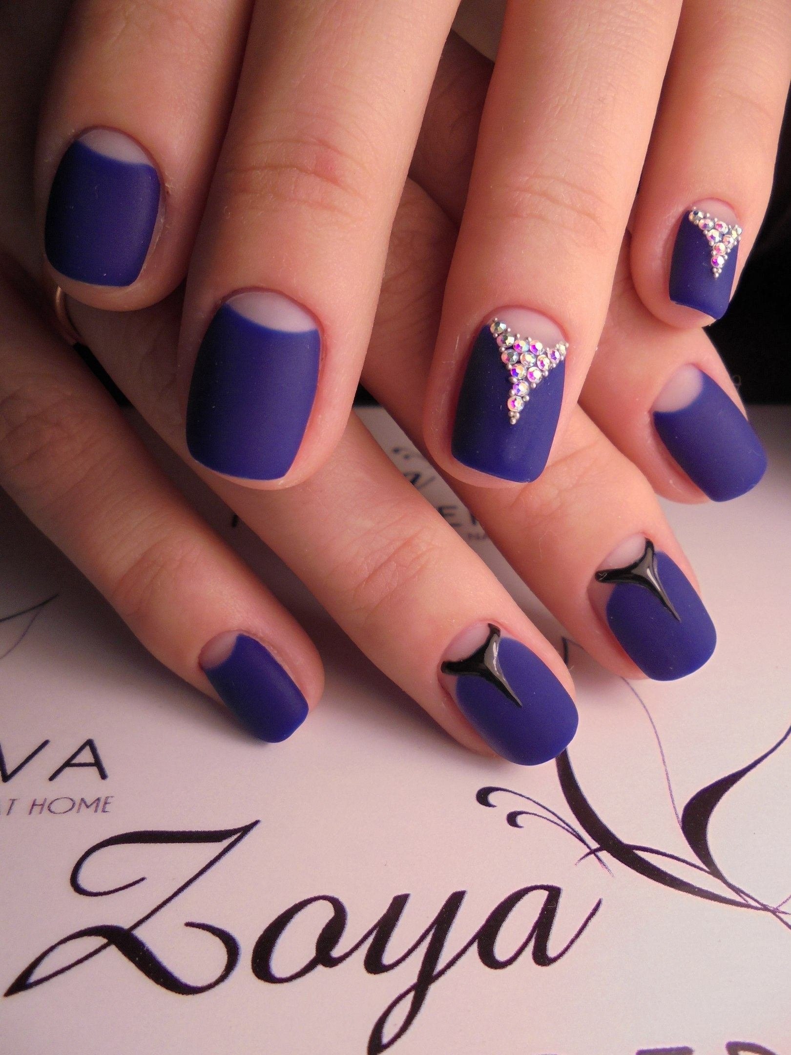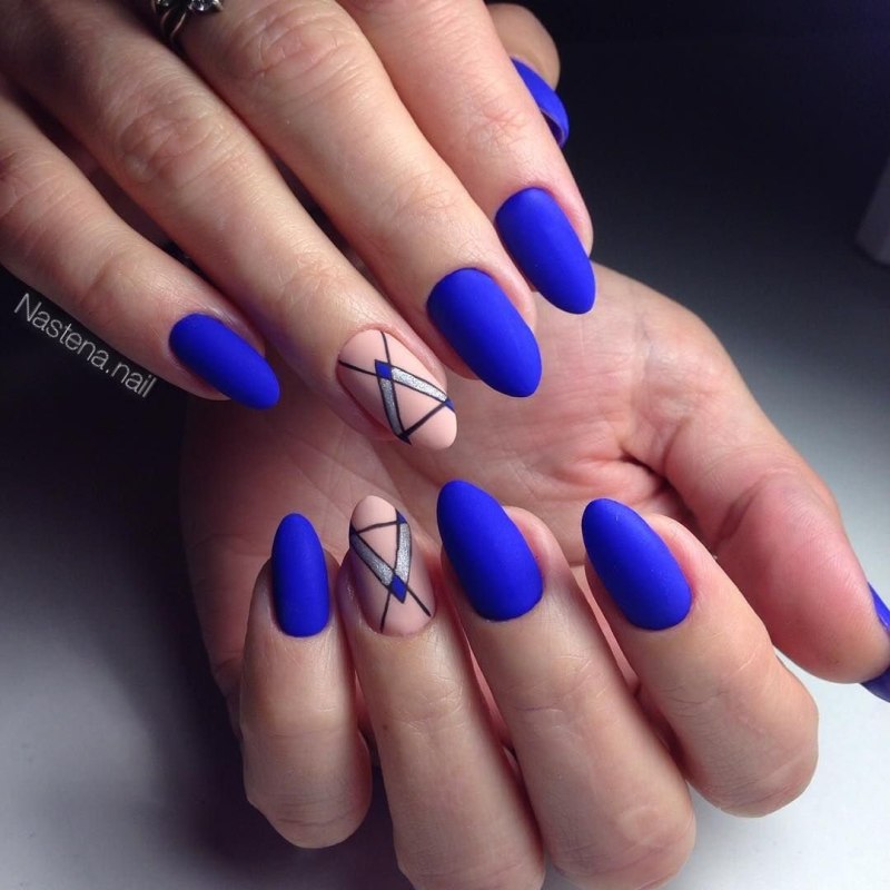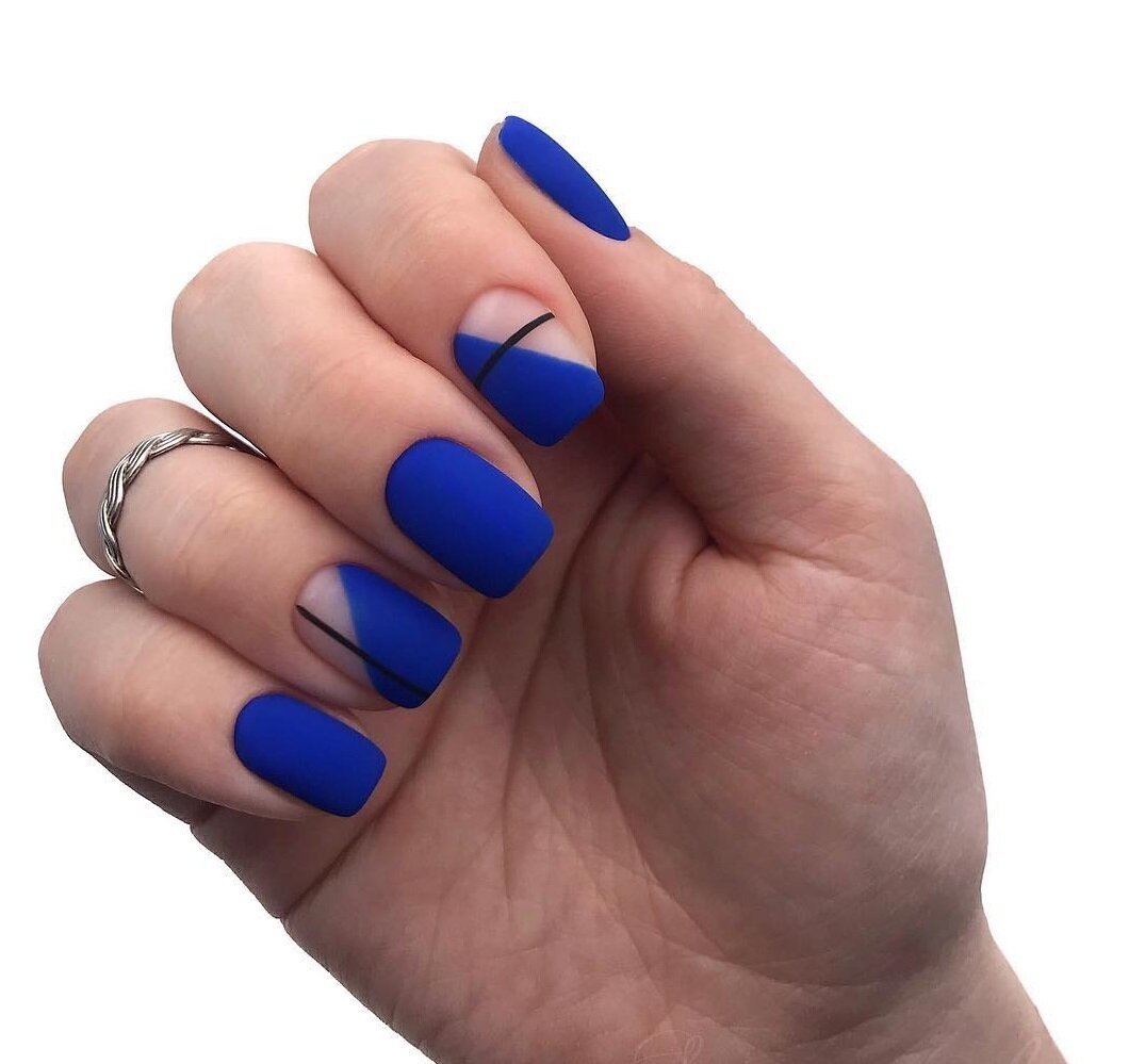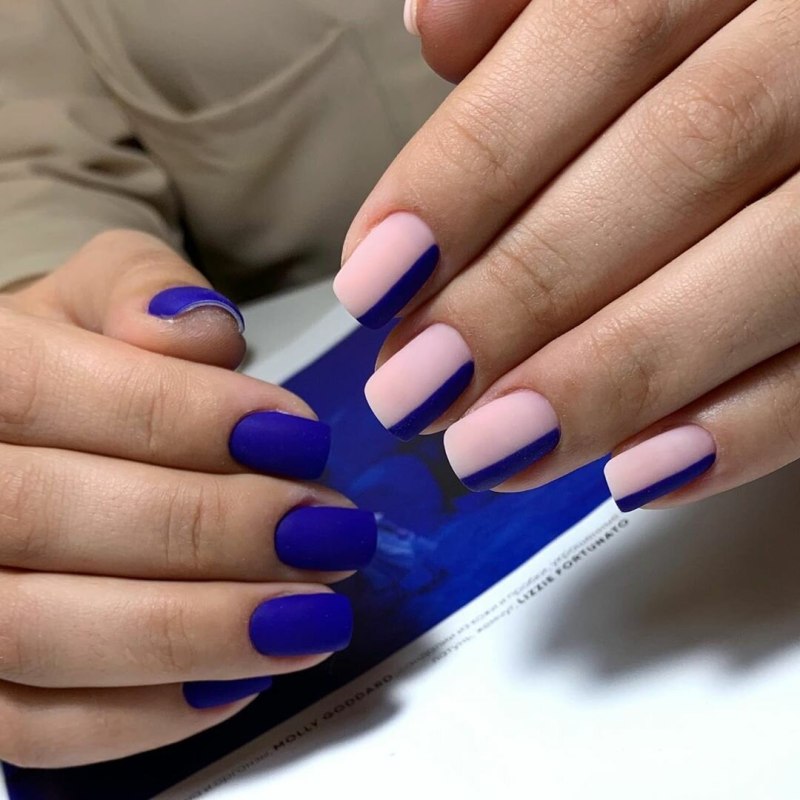 Модный маникюр с синим матовым