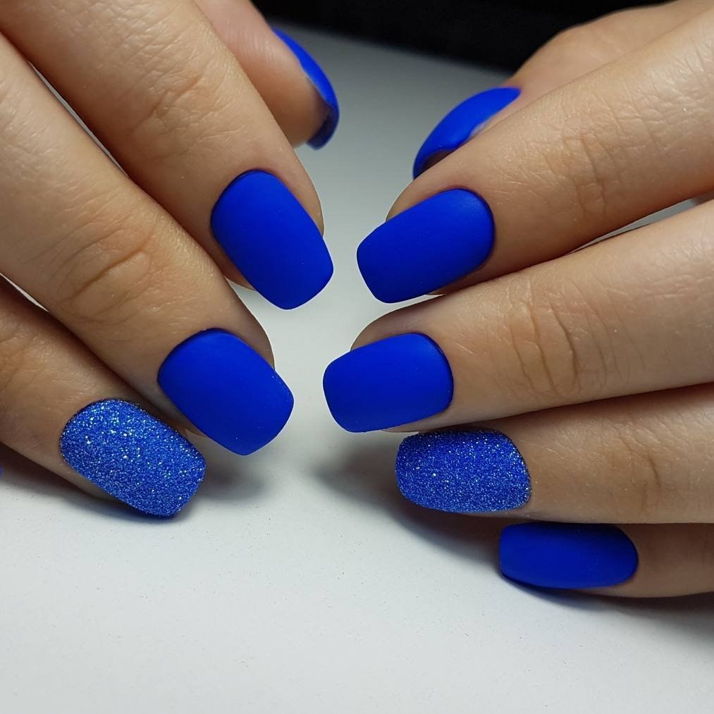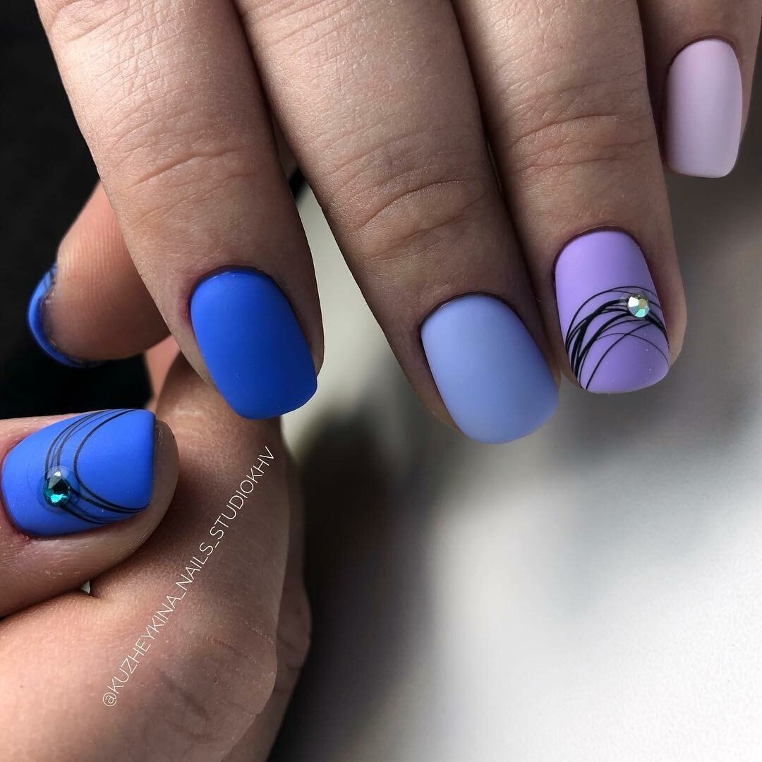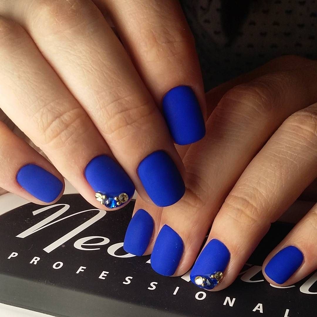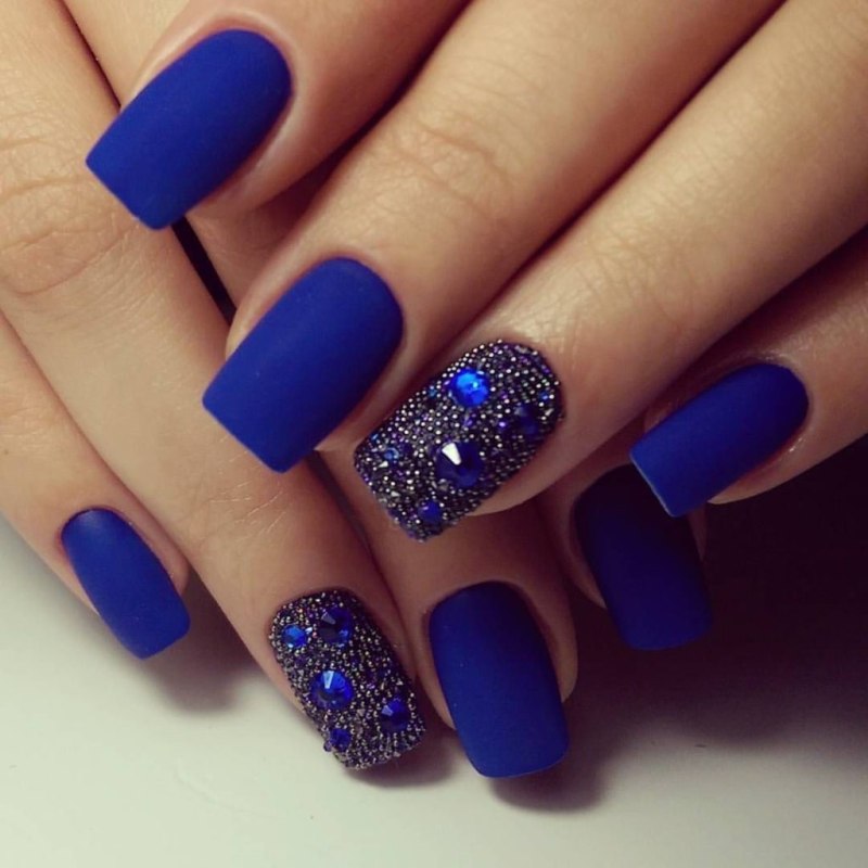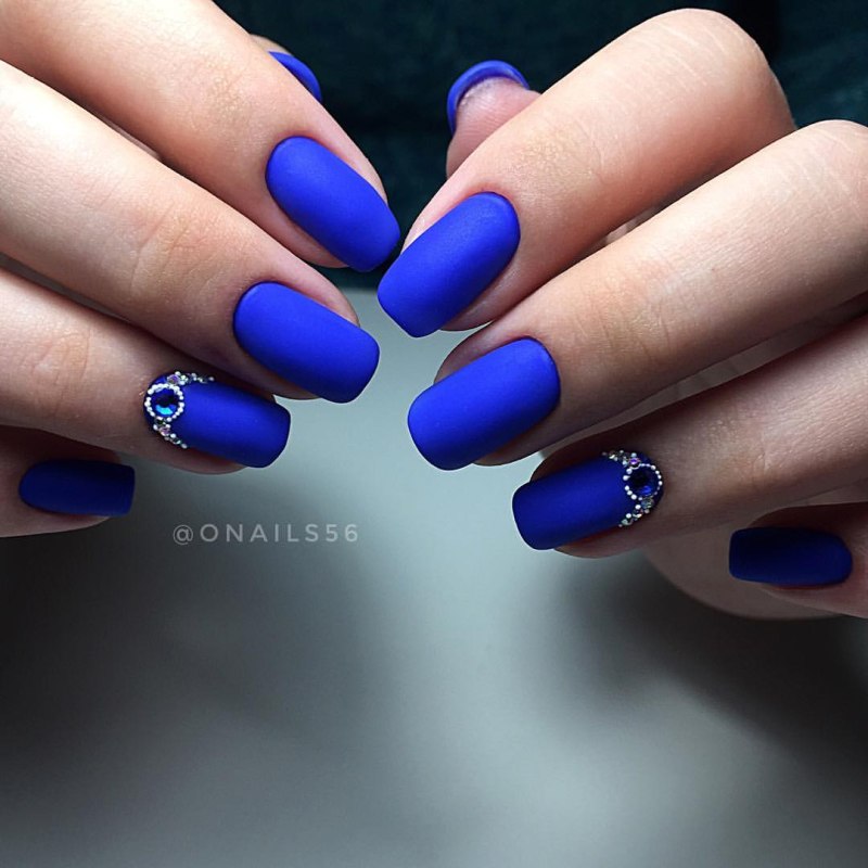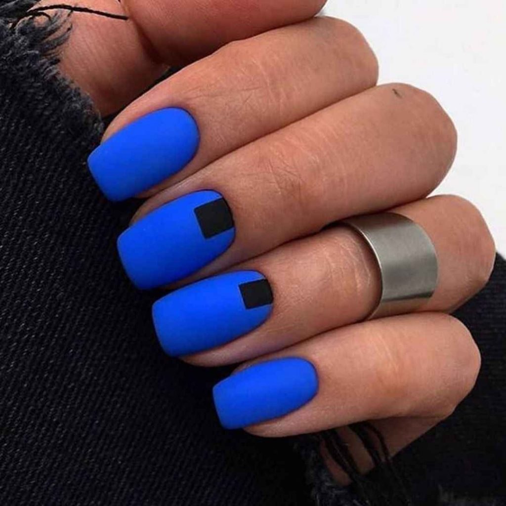 Модный маникюр с синим матовым