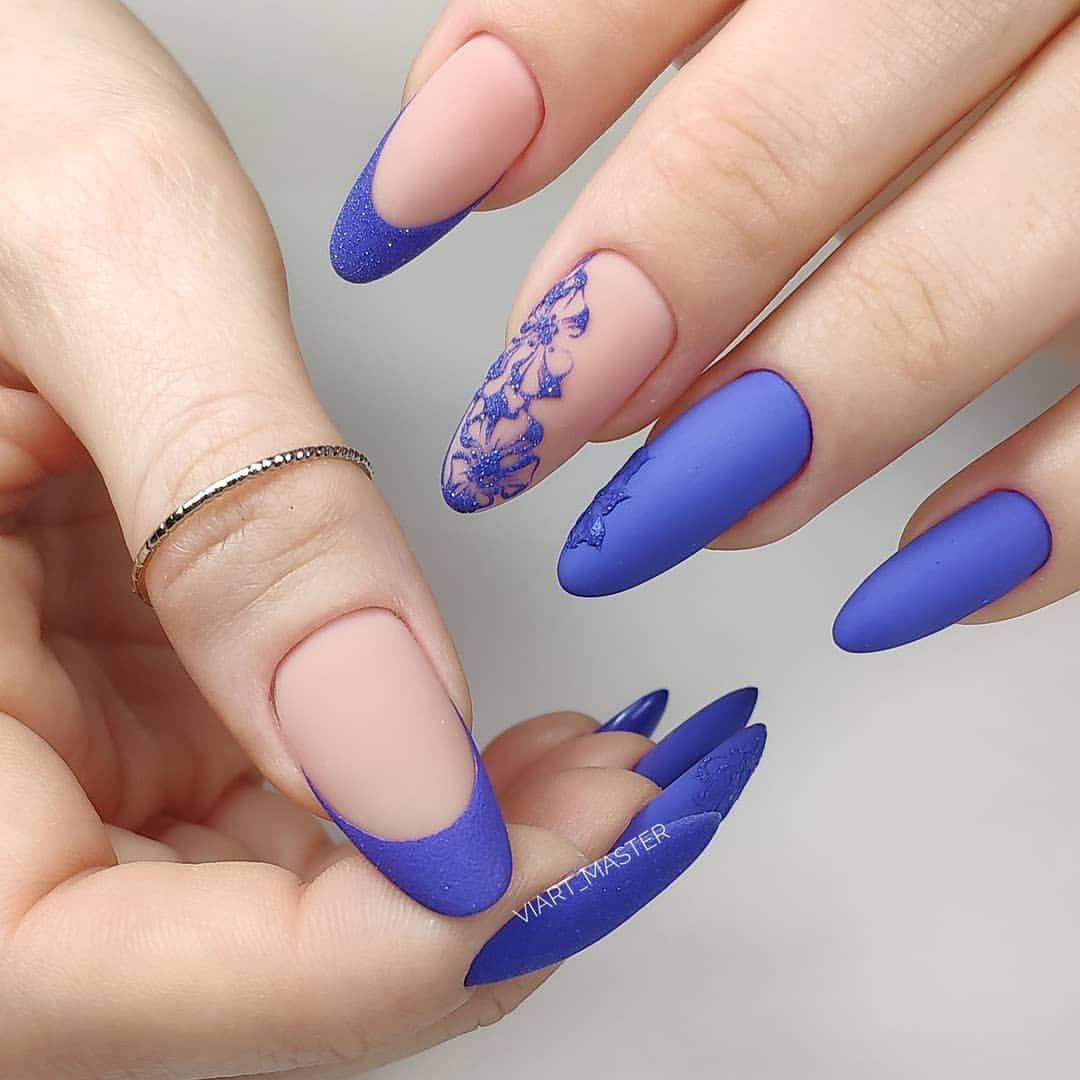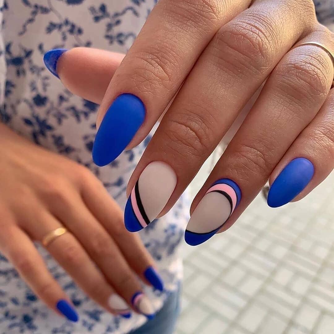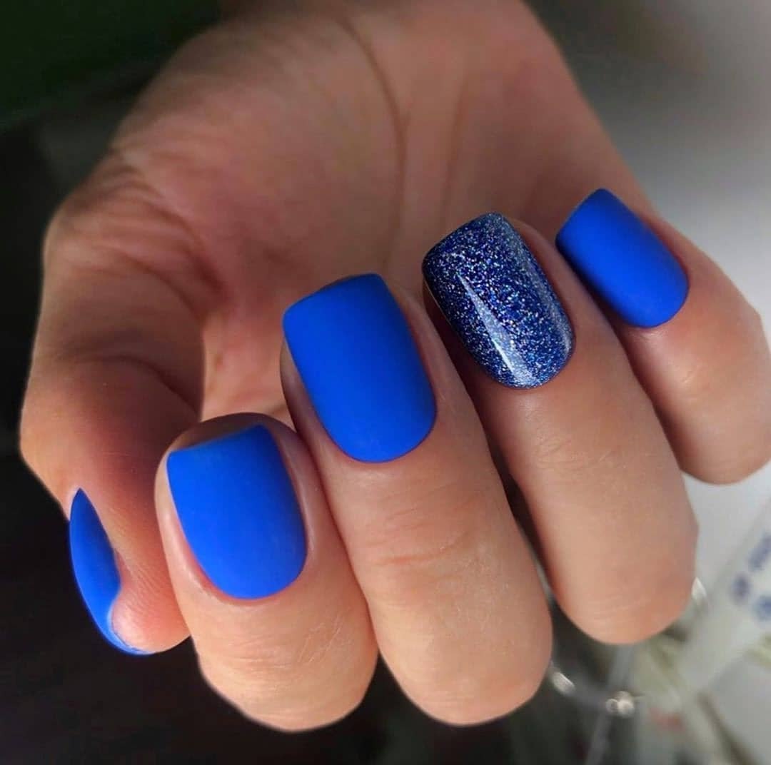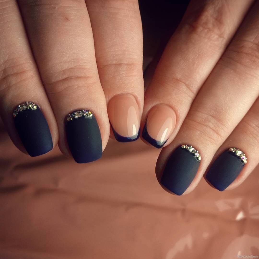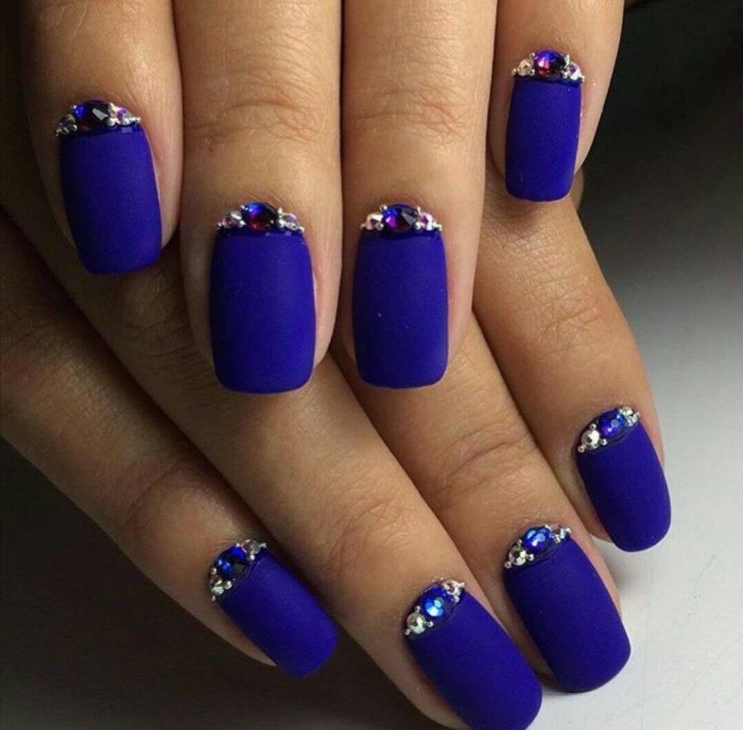 Модный маникюр с синим матовым