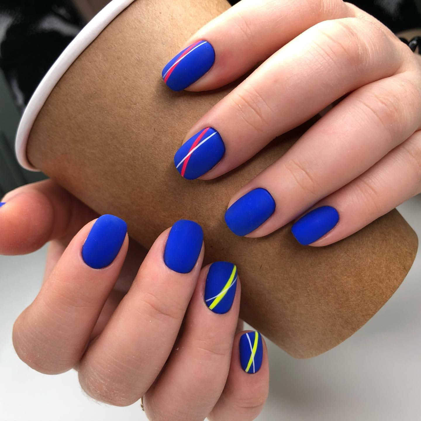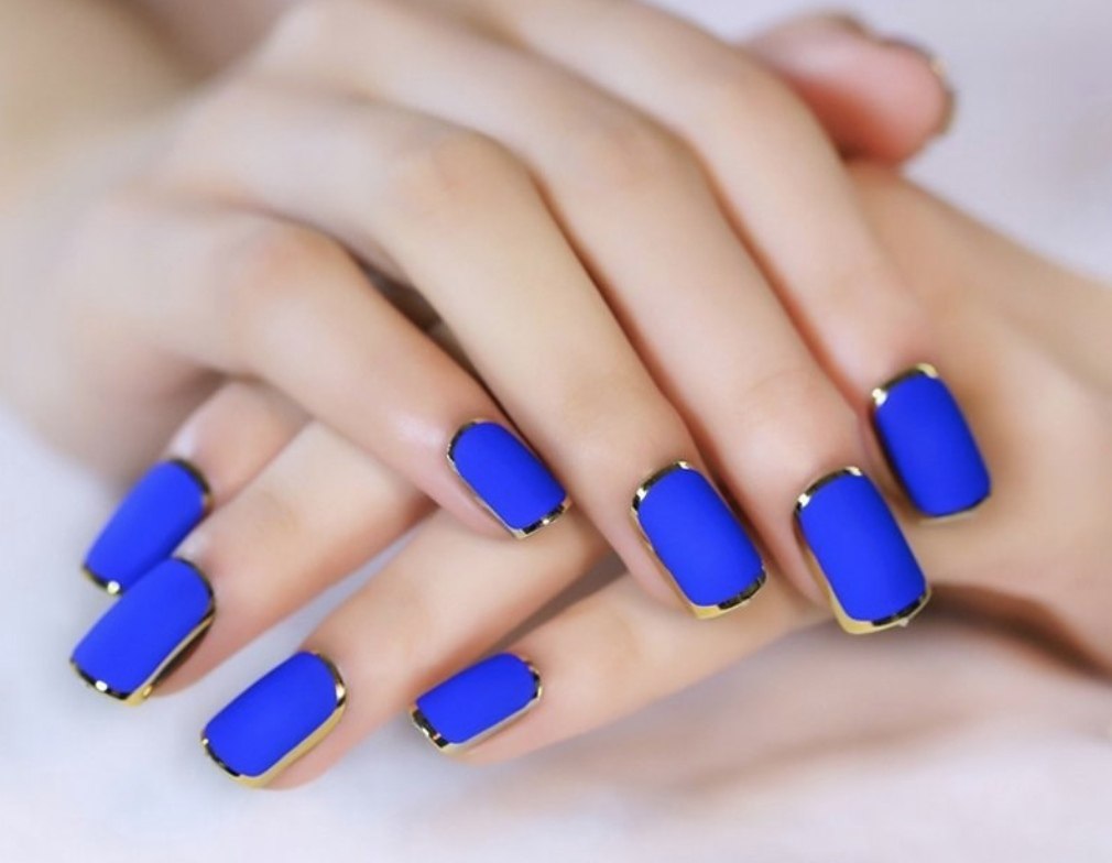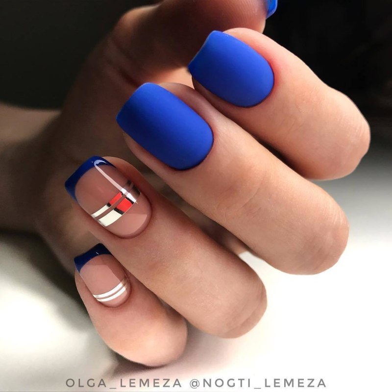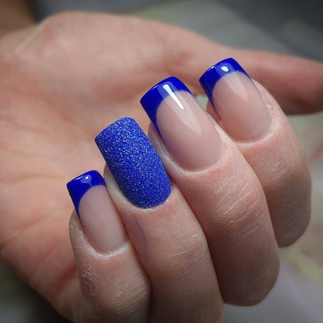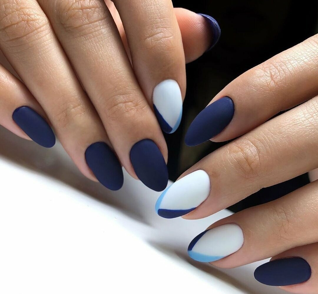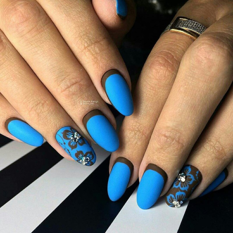 Модный маникюр с синим матовым