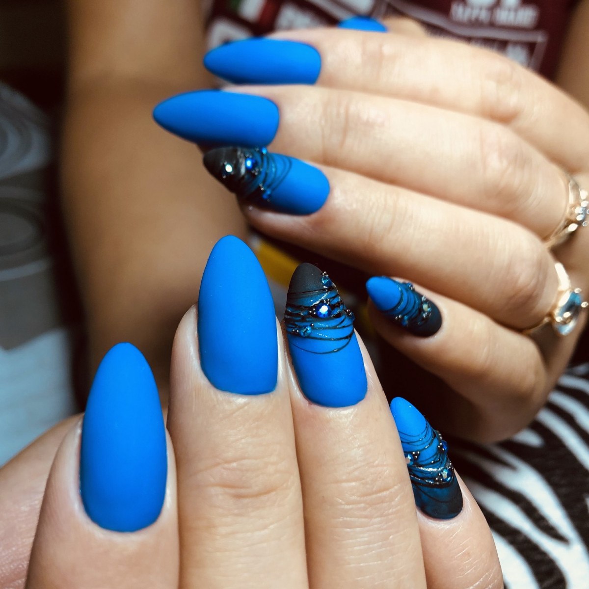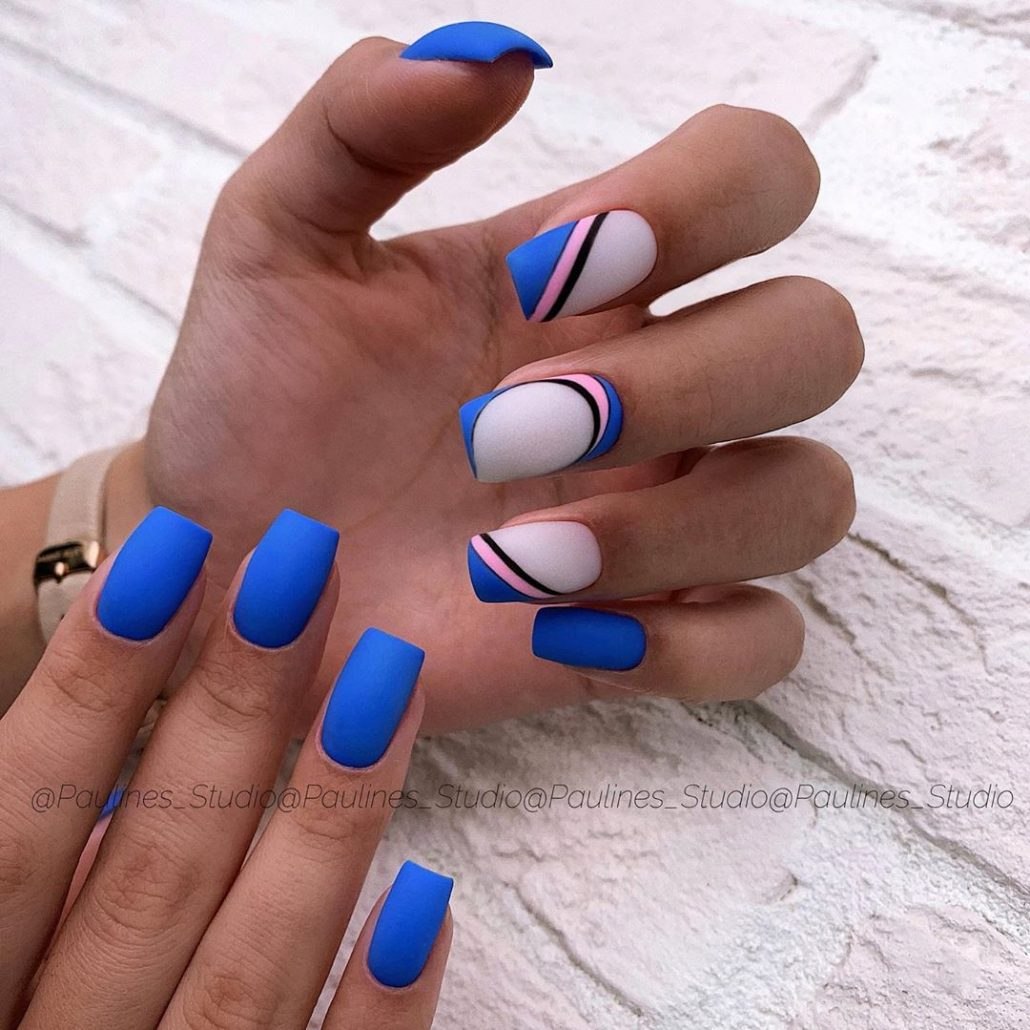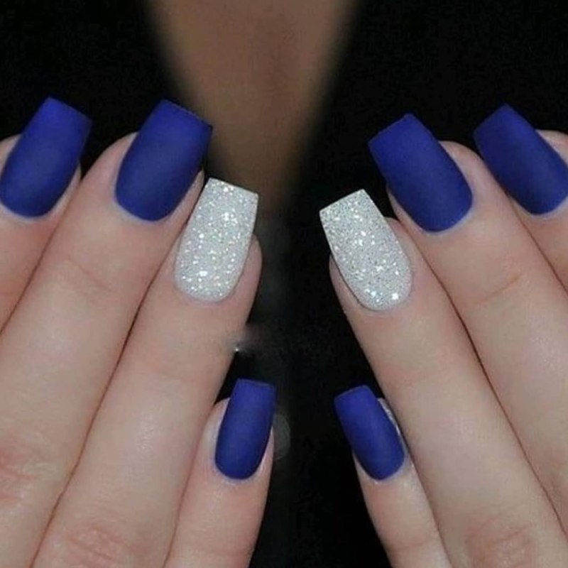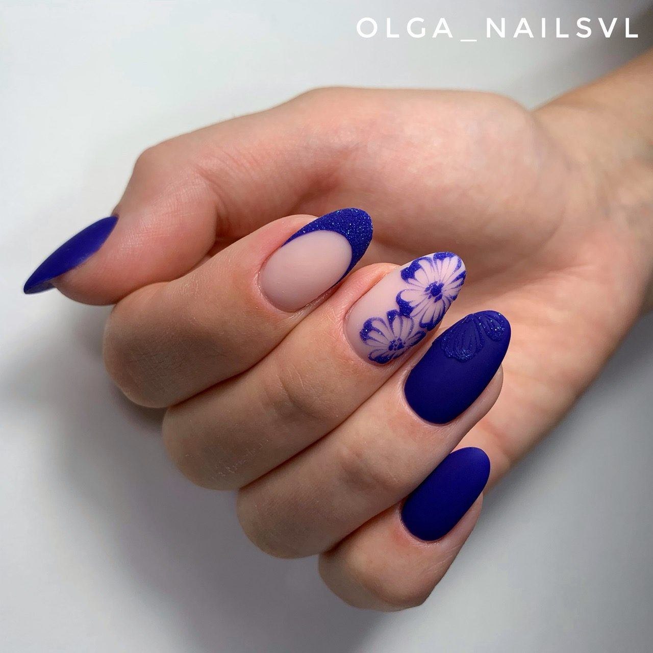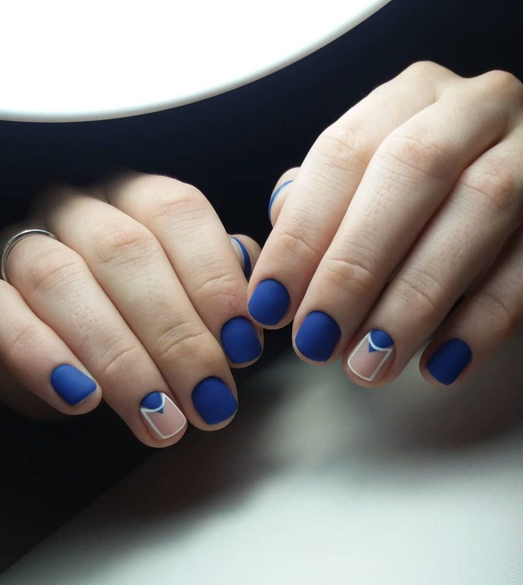 Модный маникюр с синим матовым
