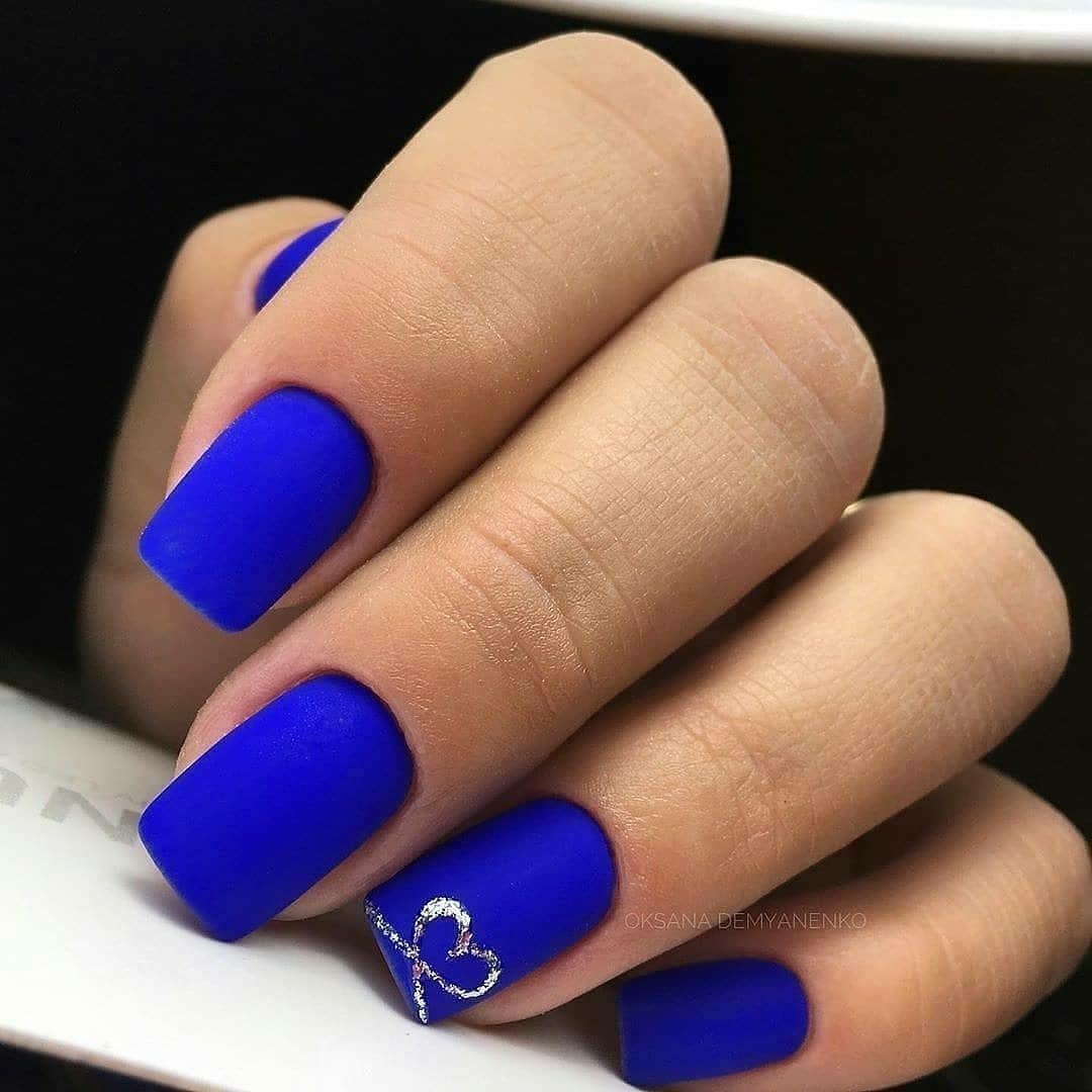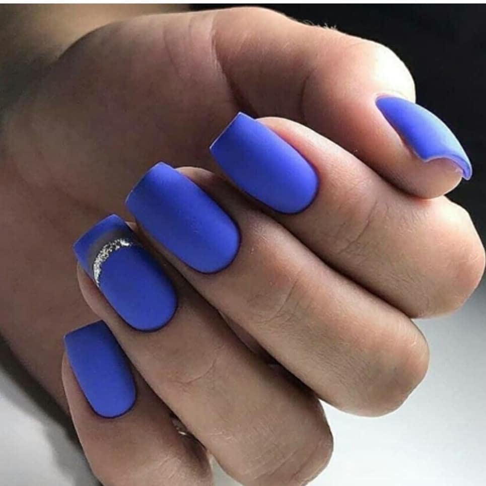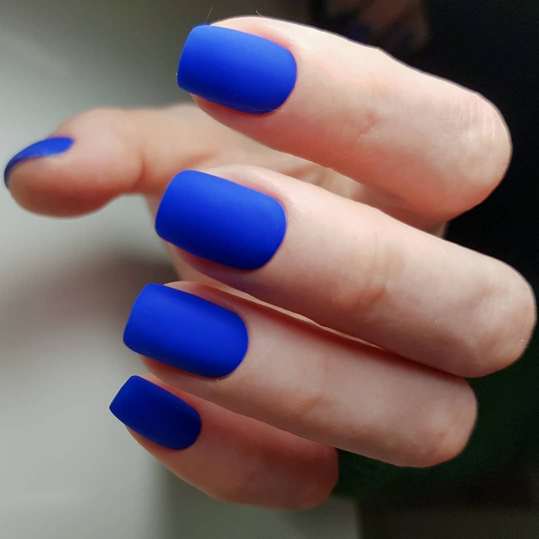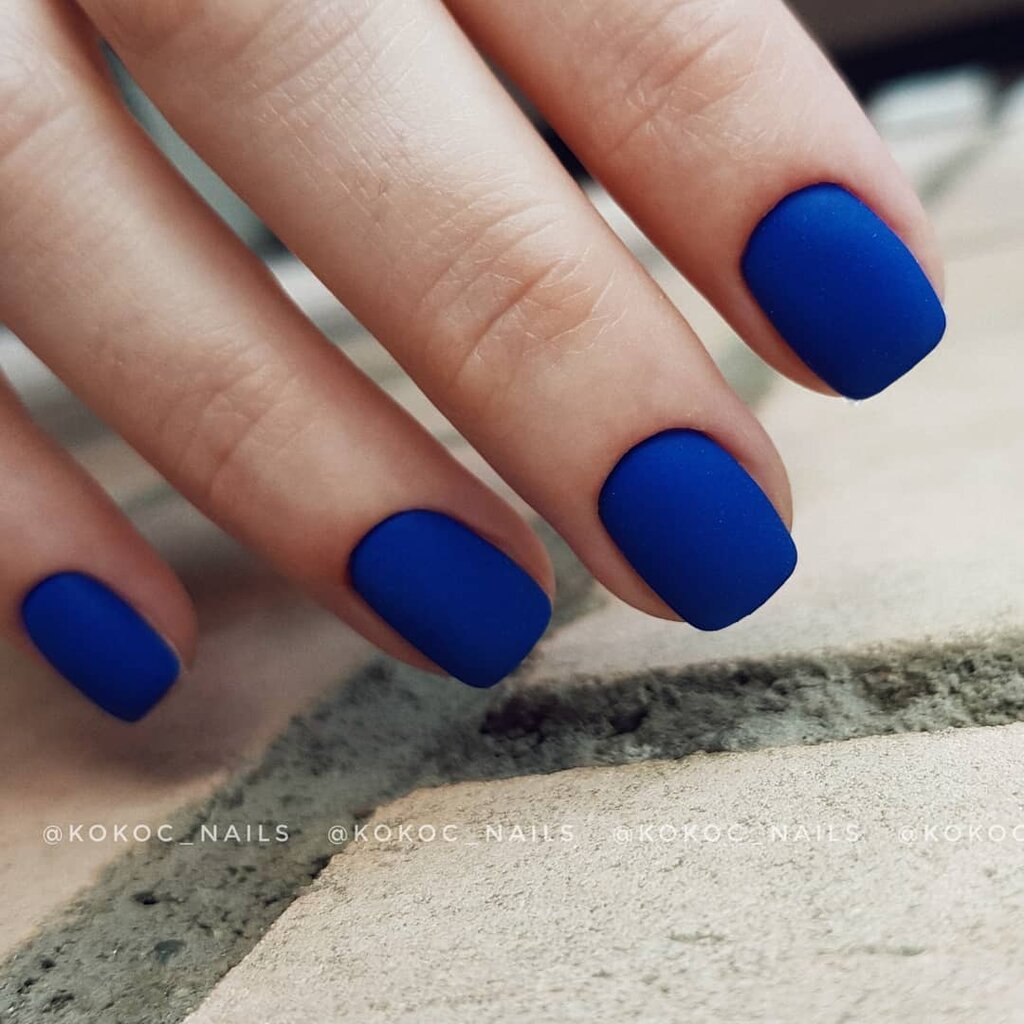 Синий матовый маникюр 2021
