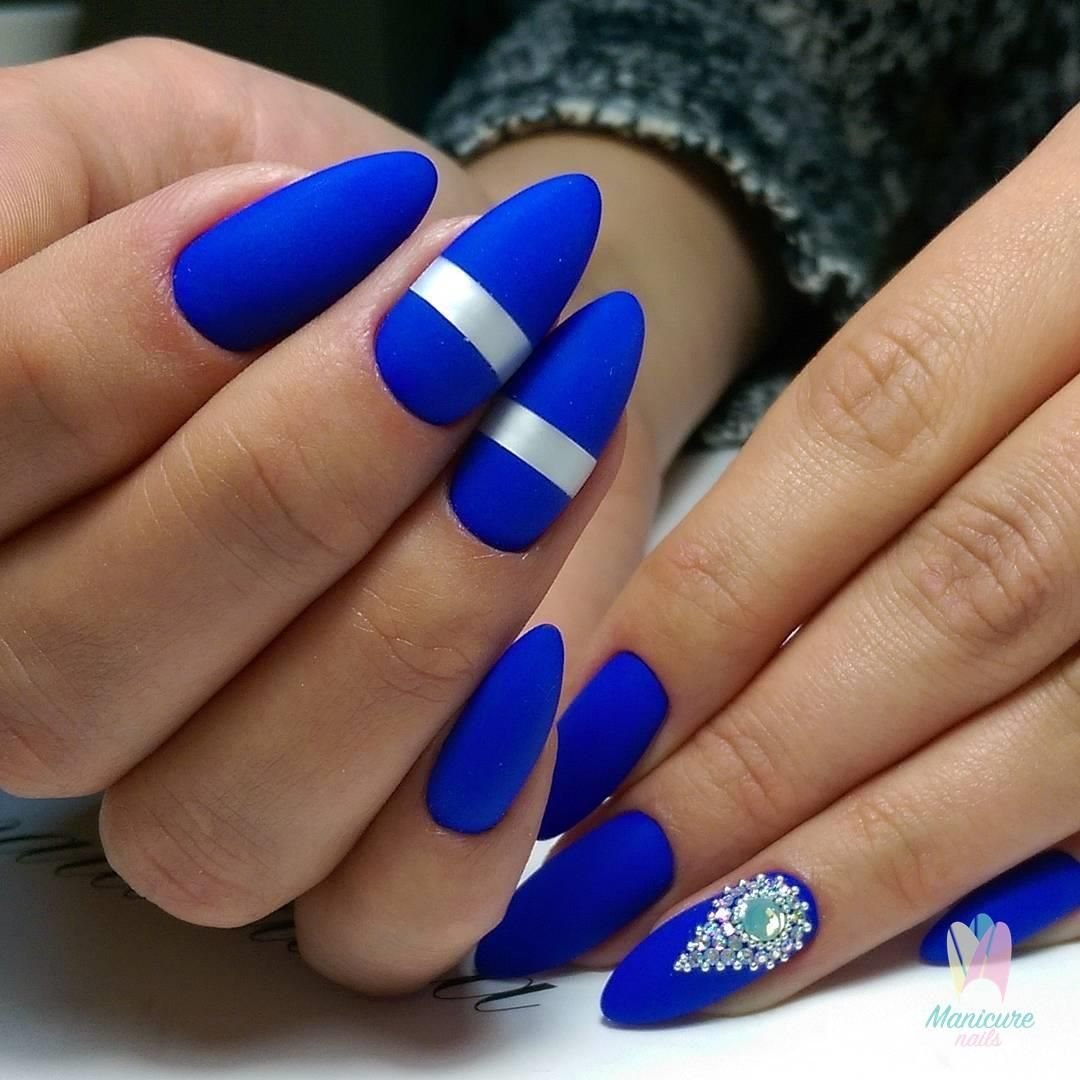 Синий маникюр 2021 миндаль
