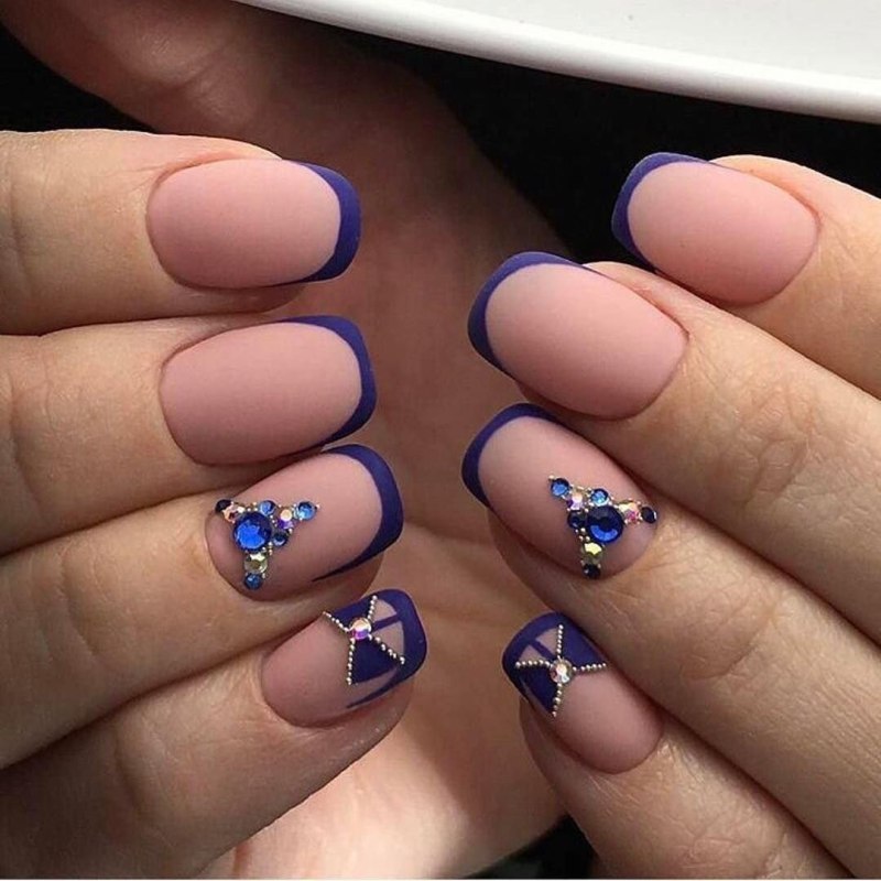 Маникюр синий матовый френч