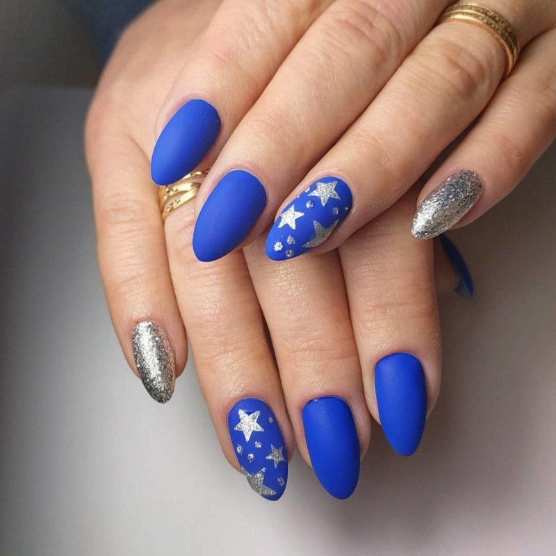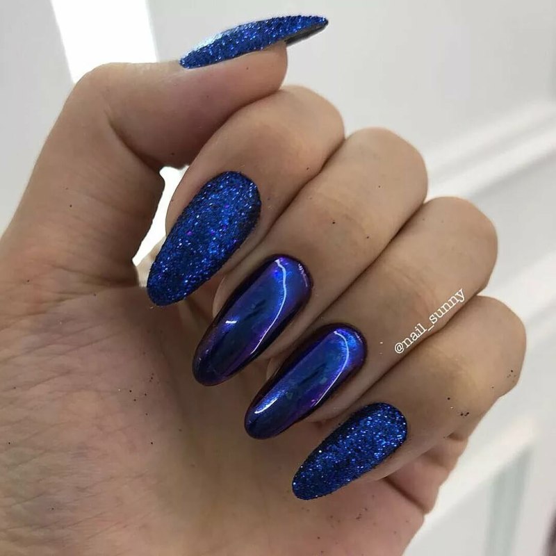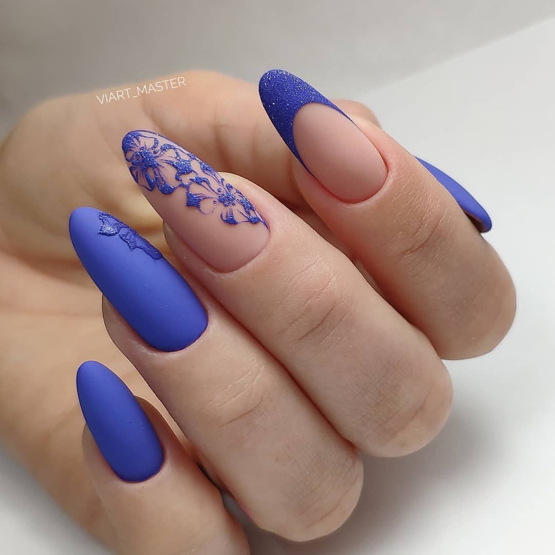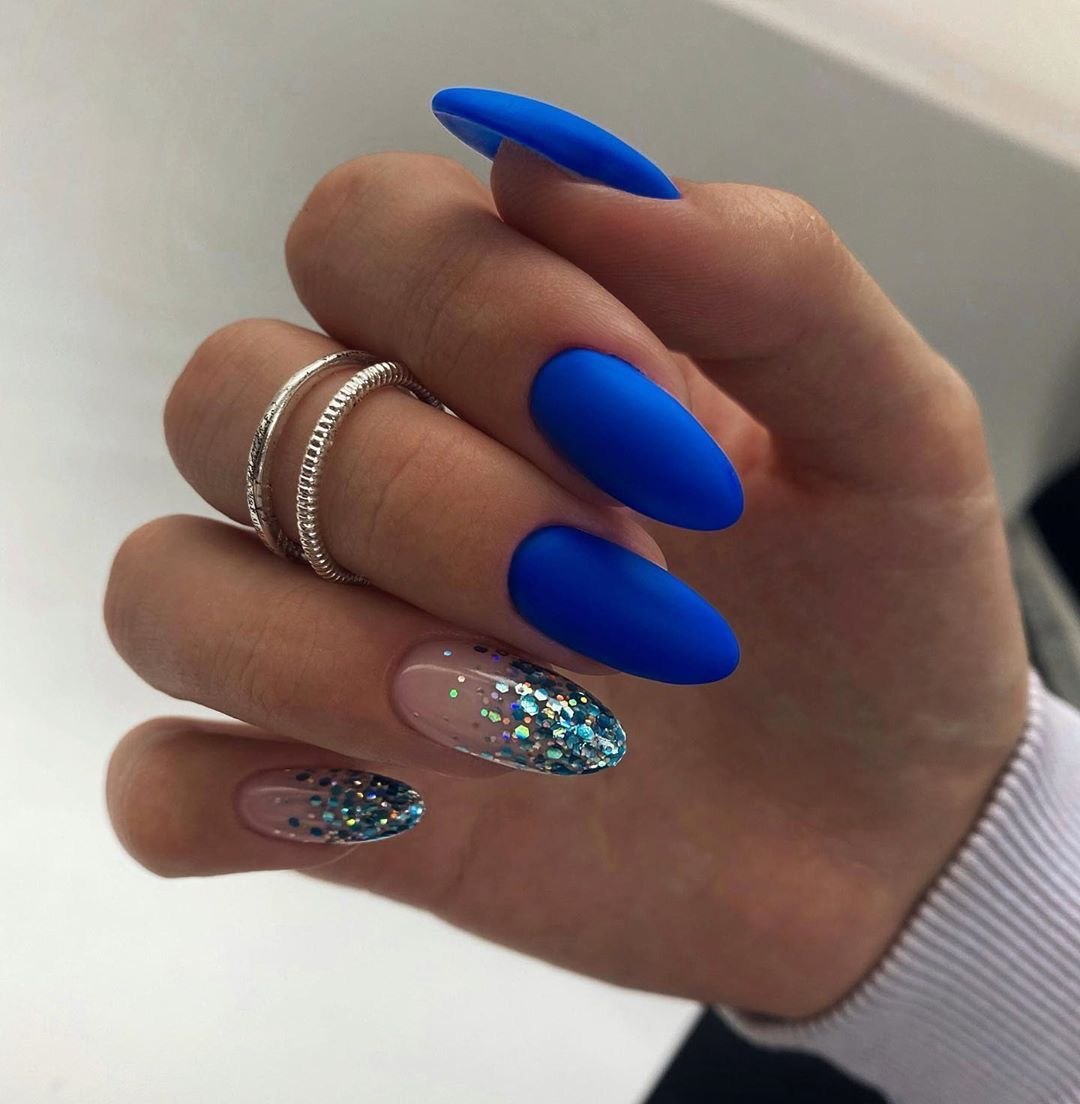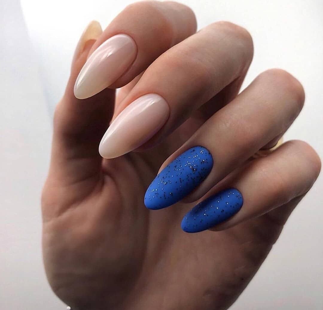 Синий маникюр 2021 миндаль