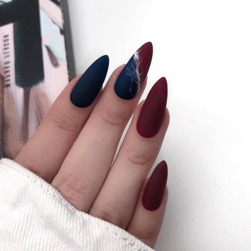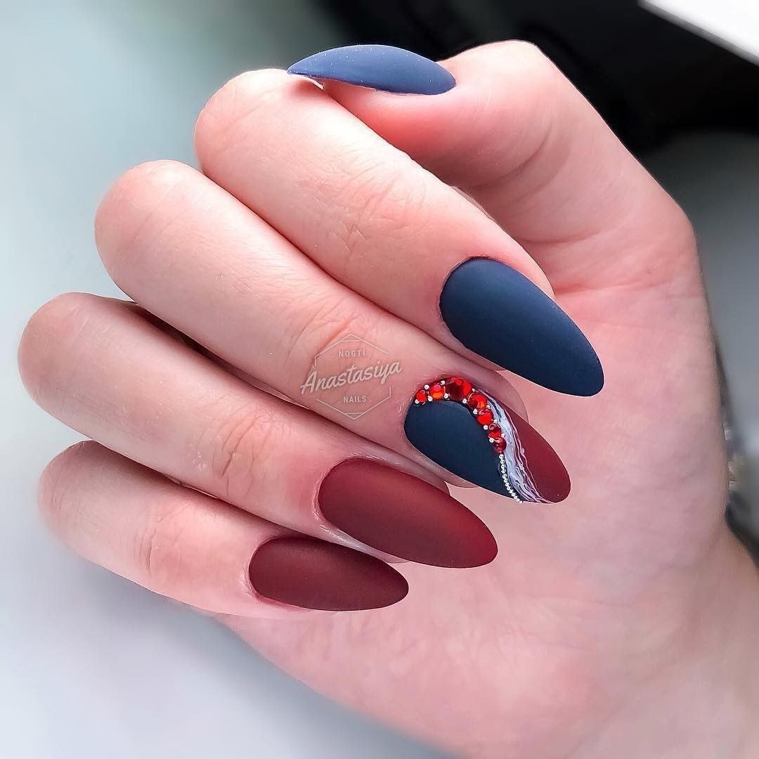 Маникюр синий с красным матовый