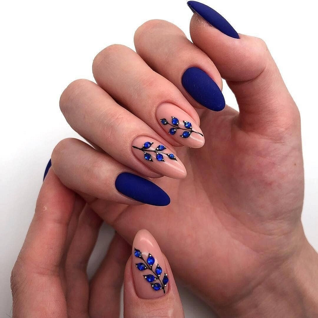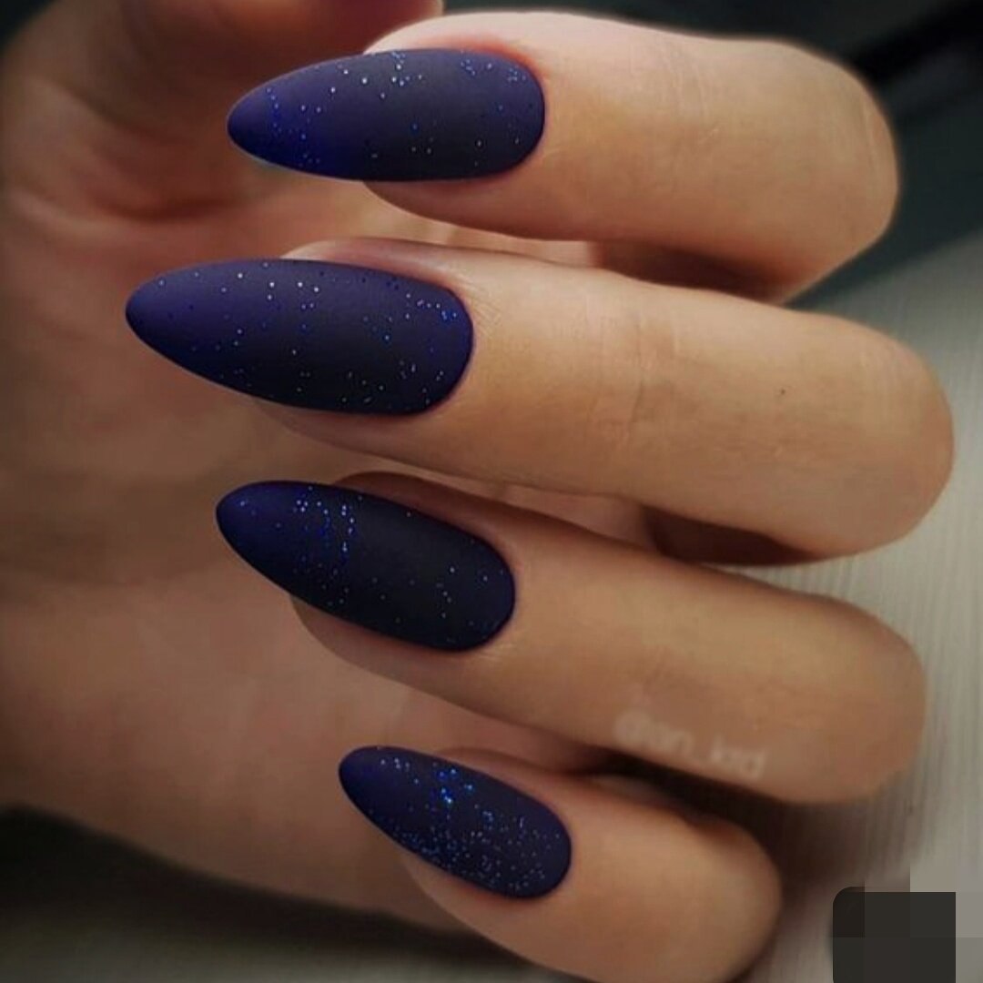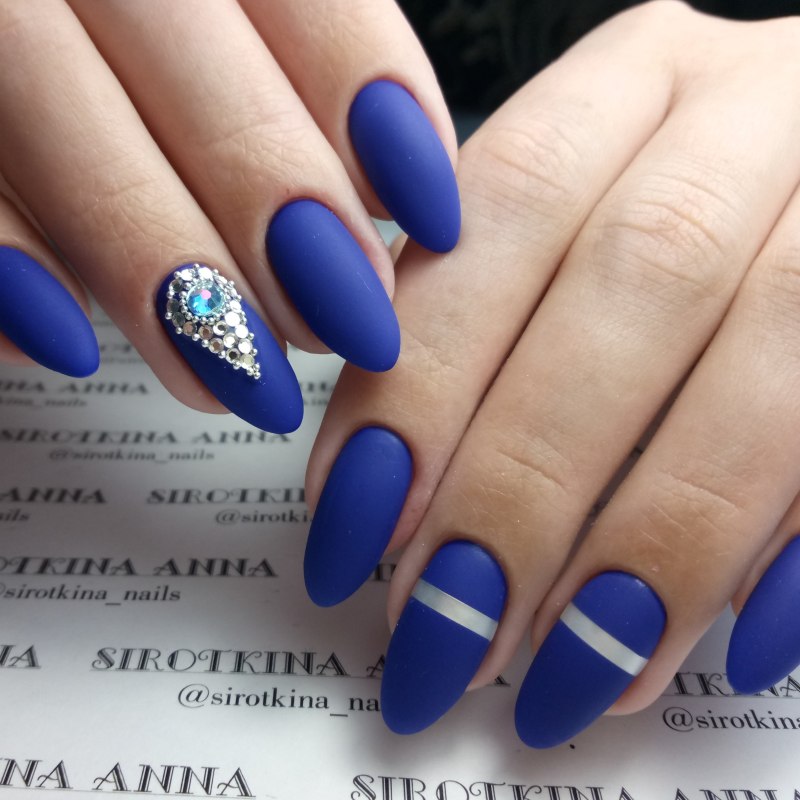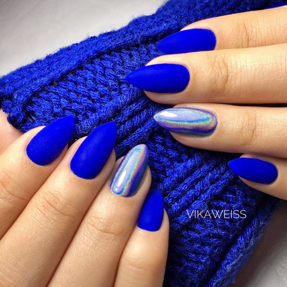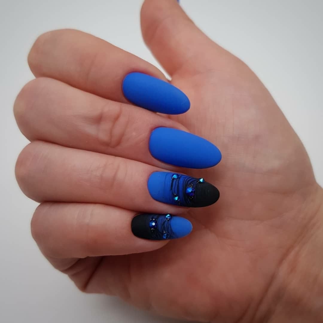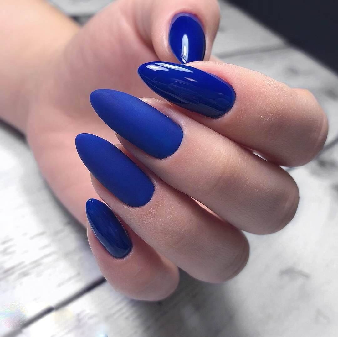 Синие матовые ногти миндаль дизайн