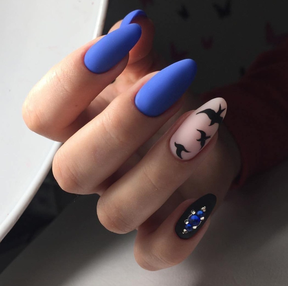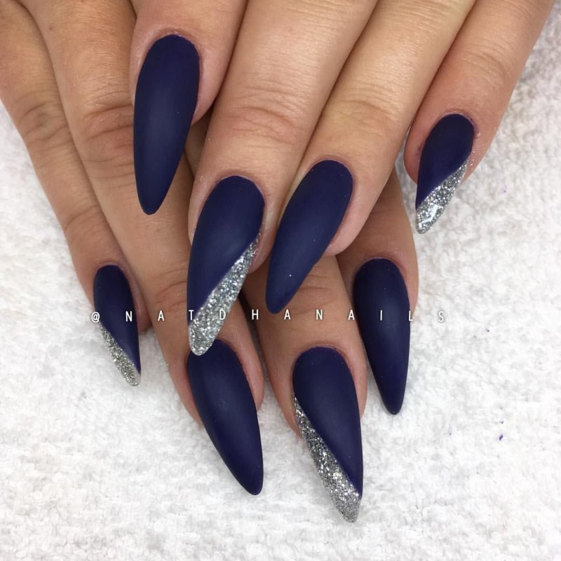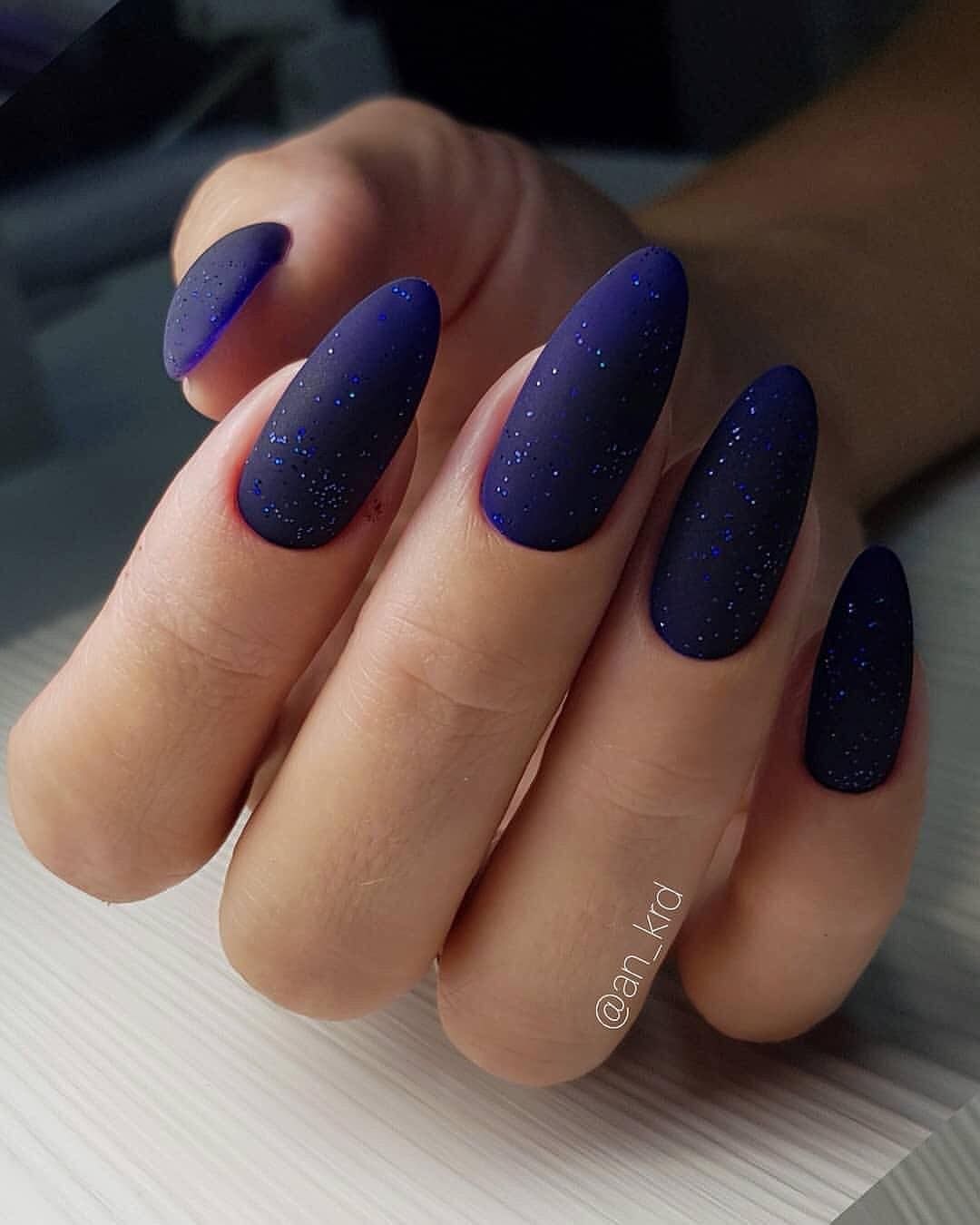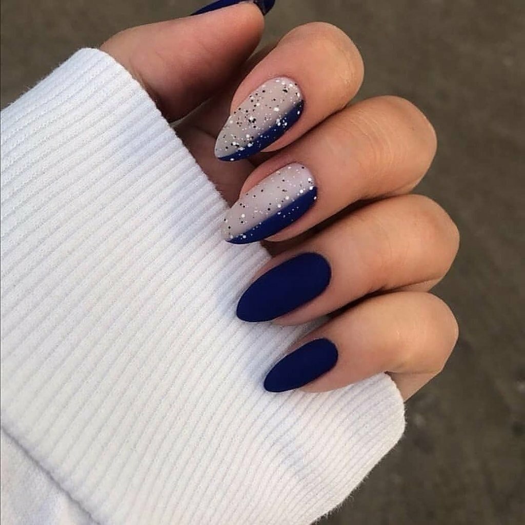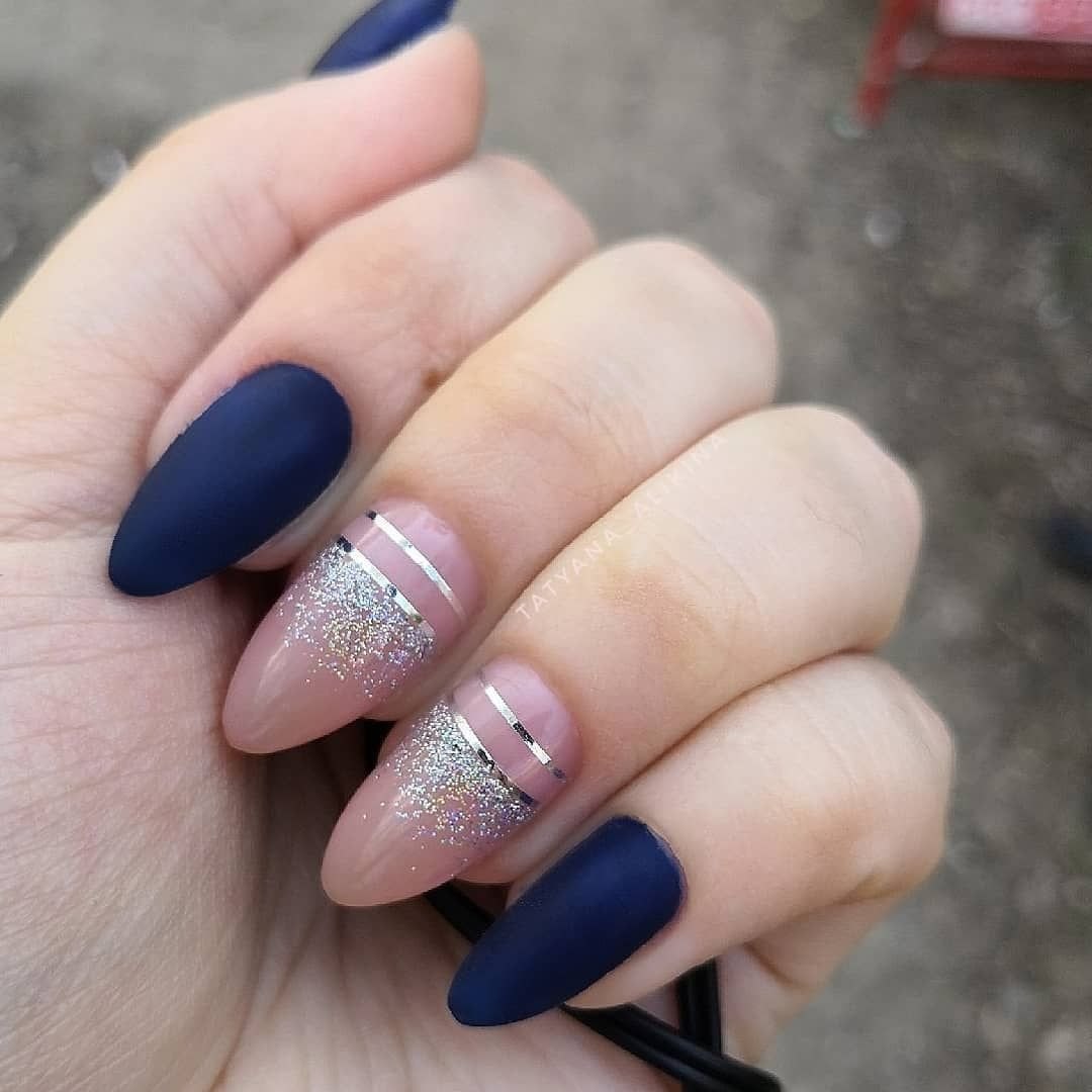 Синие матовые ногти миндаль дизайн