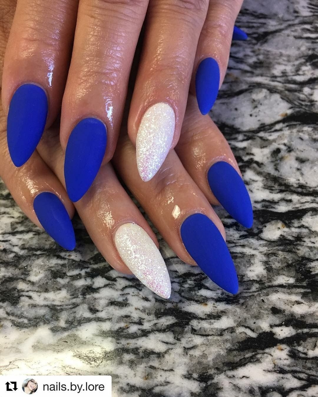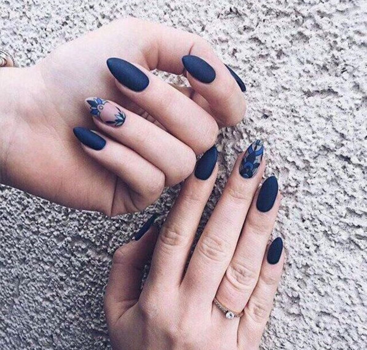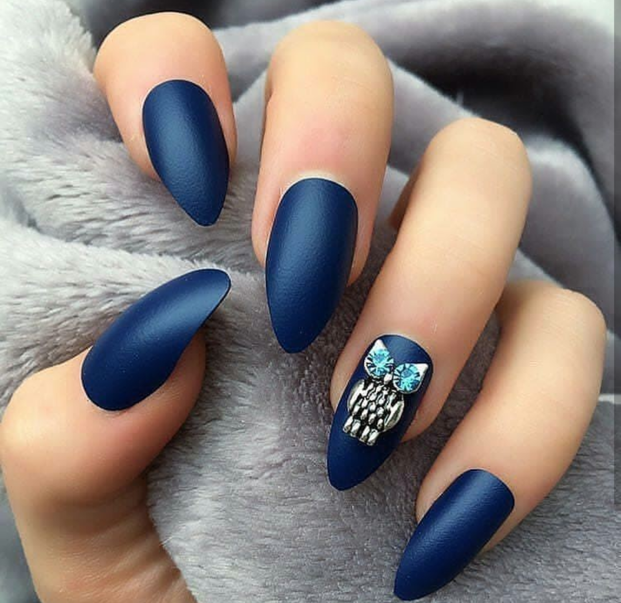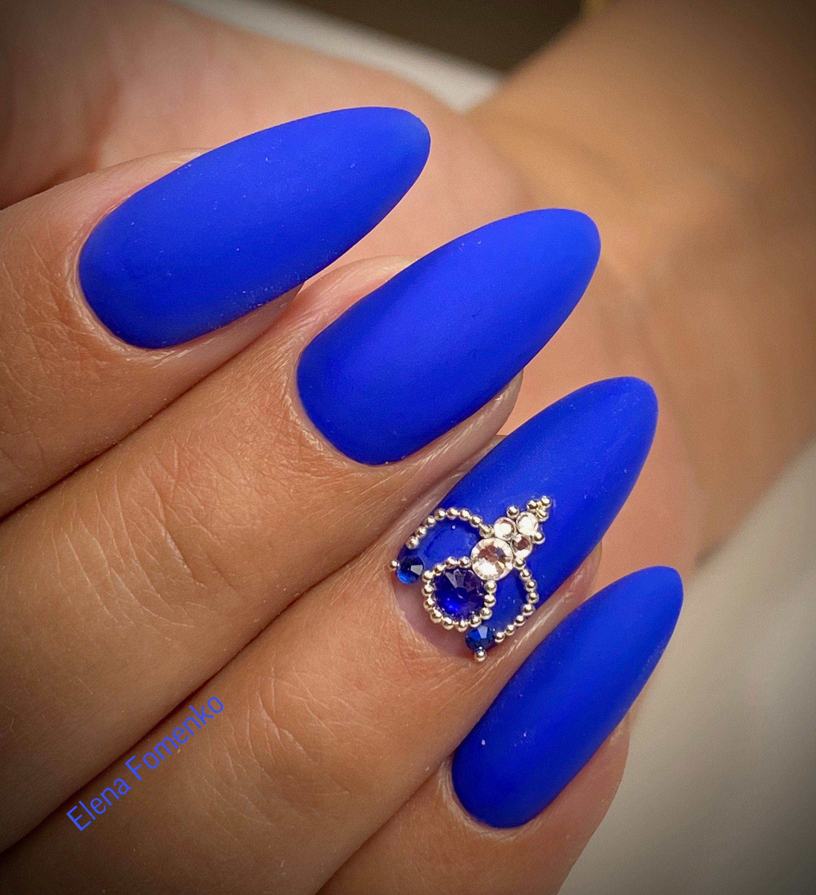 Синие матовые ногти миндаль дизайн