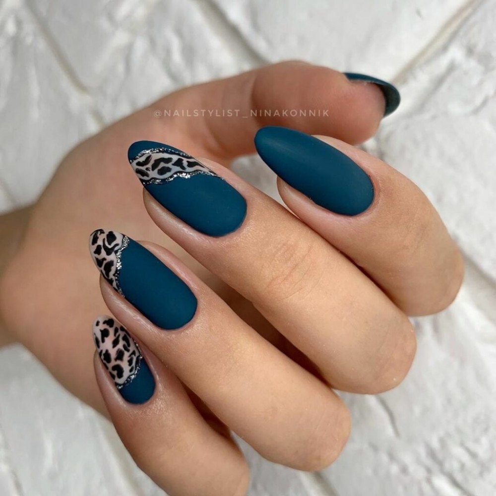 Маникюр синий леопард
