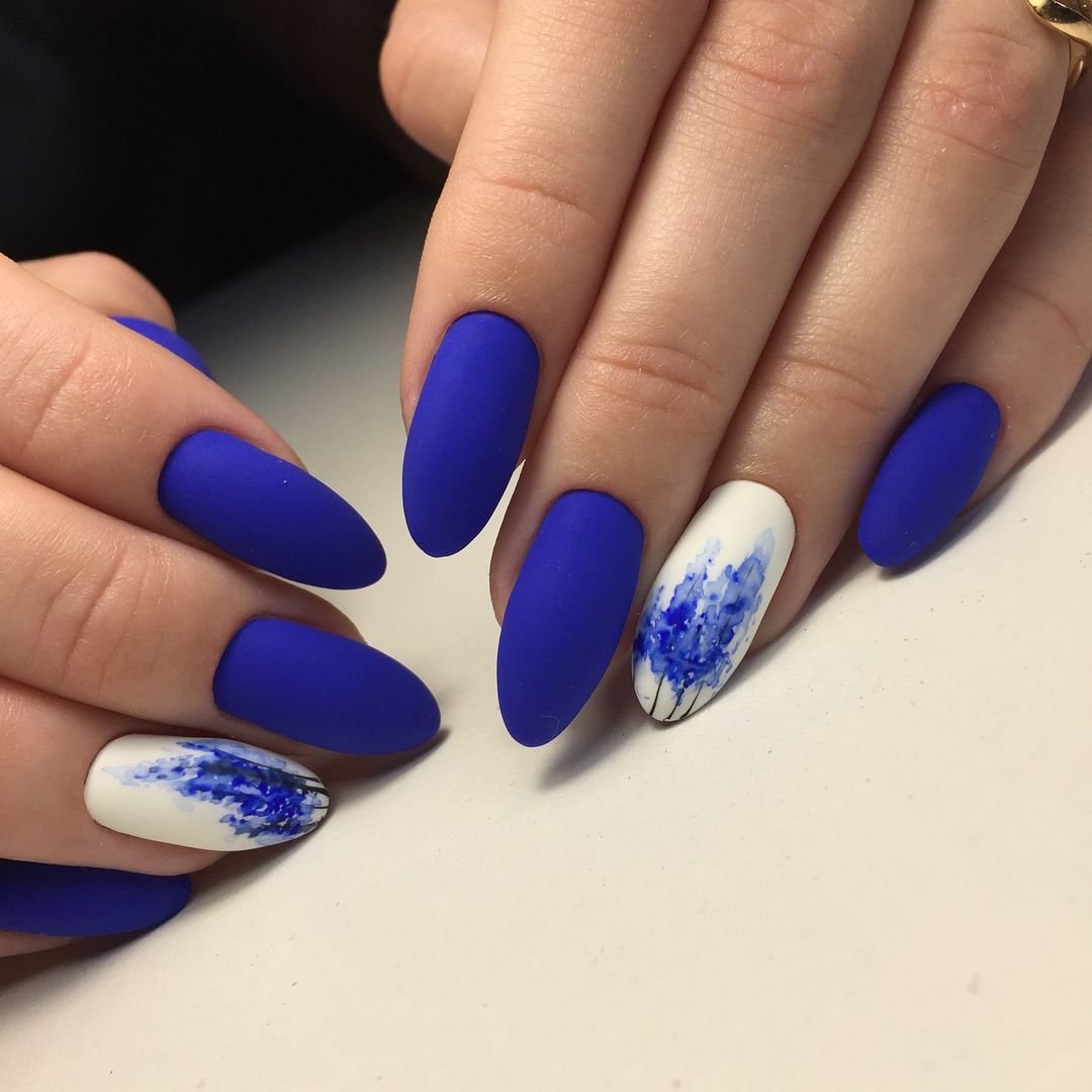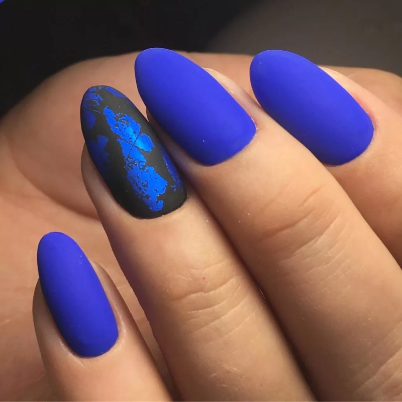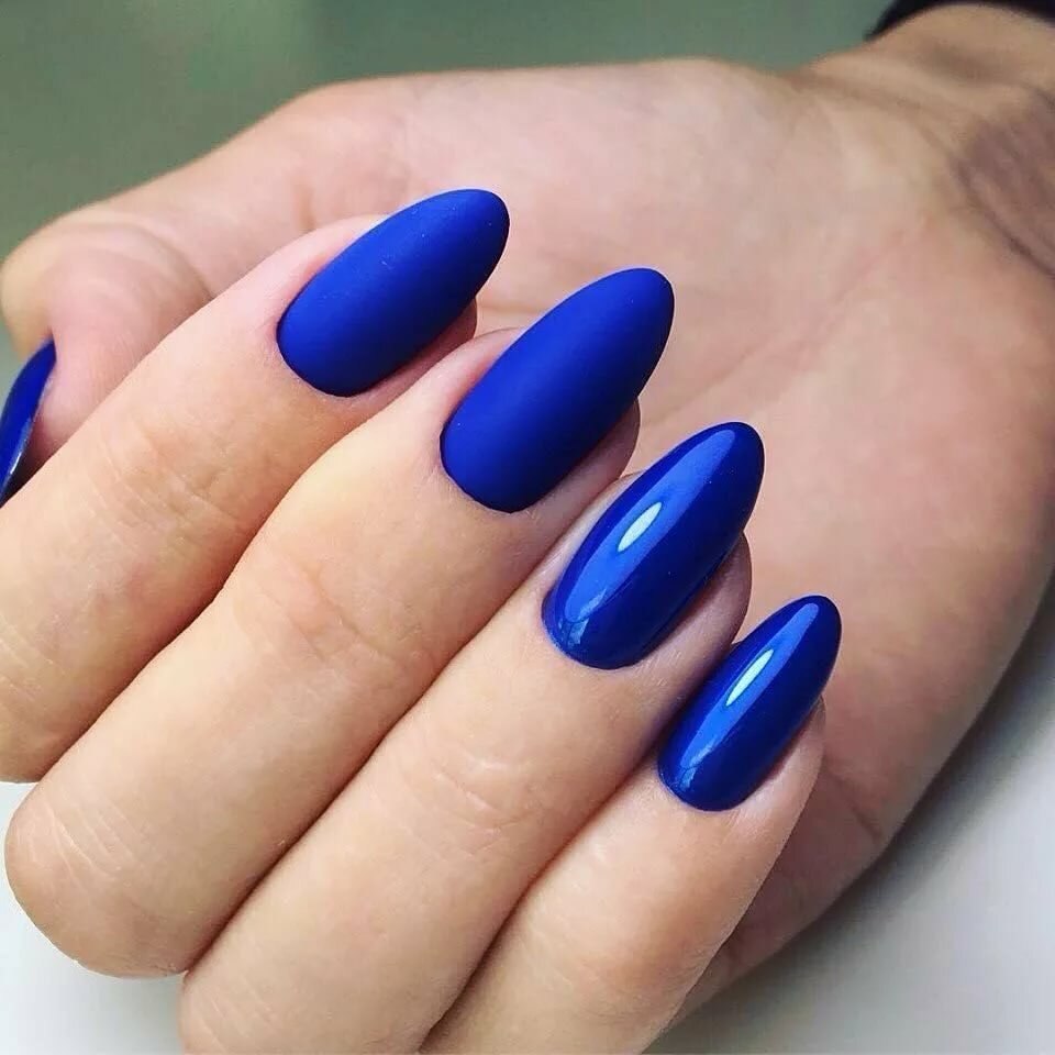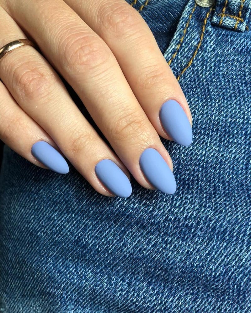 Синий матовый маникюр миндаль 2022