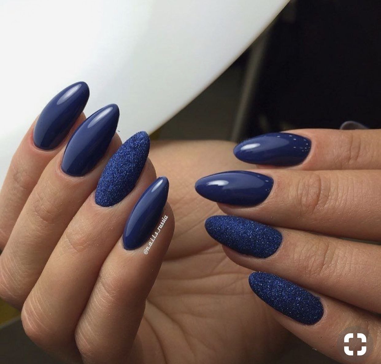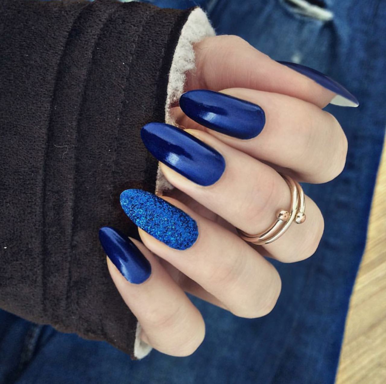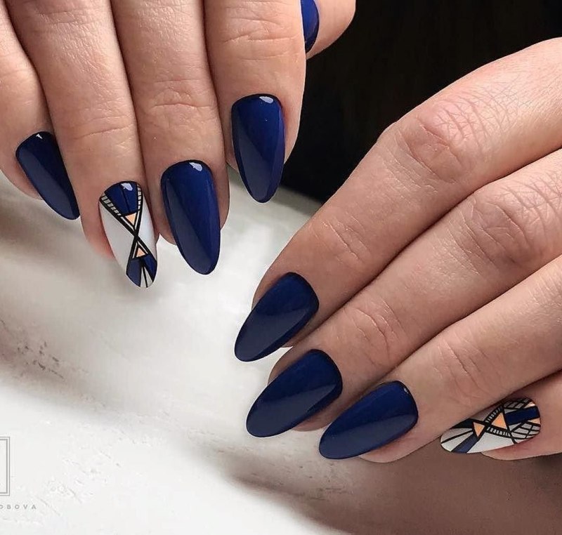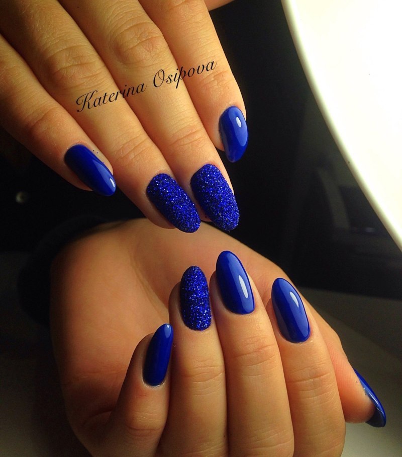Синий маникюр миндаль