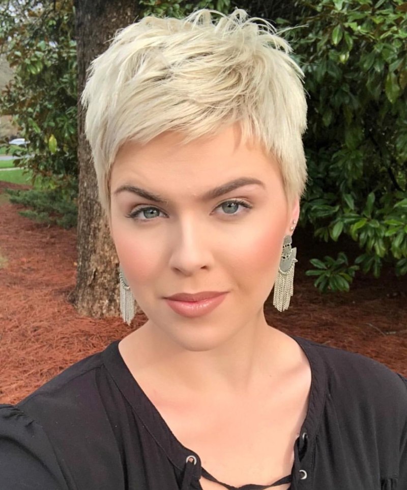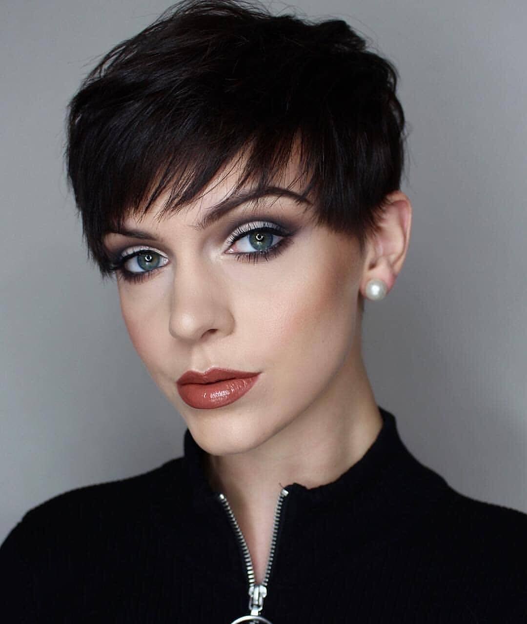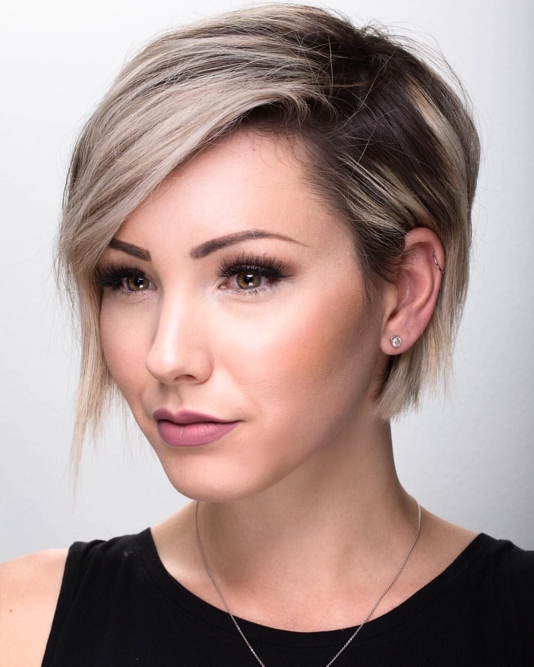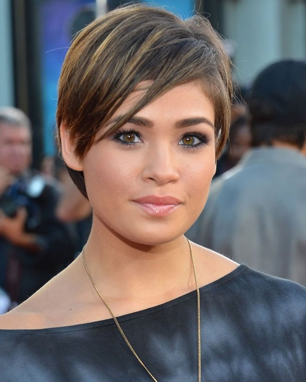 Стрижка Пикси удлиненная с челкой на круглом лице