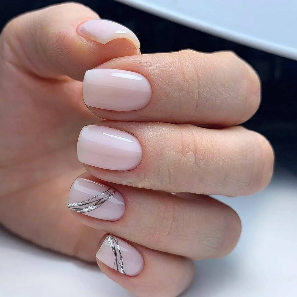 Нюдовый маникюр 2021 на короткие квадратные ногти