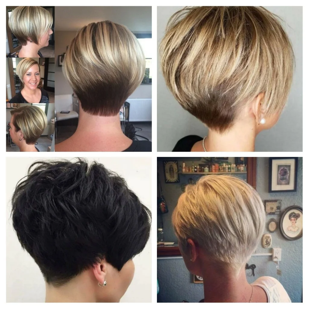 Стрижка женская Пикси на короткие волосы вид сзади и спереди