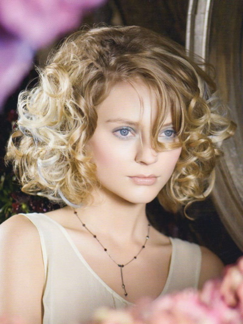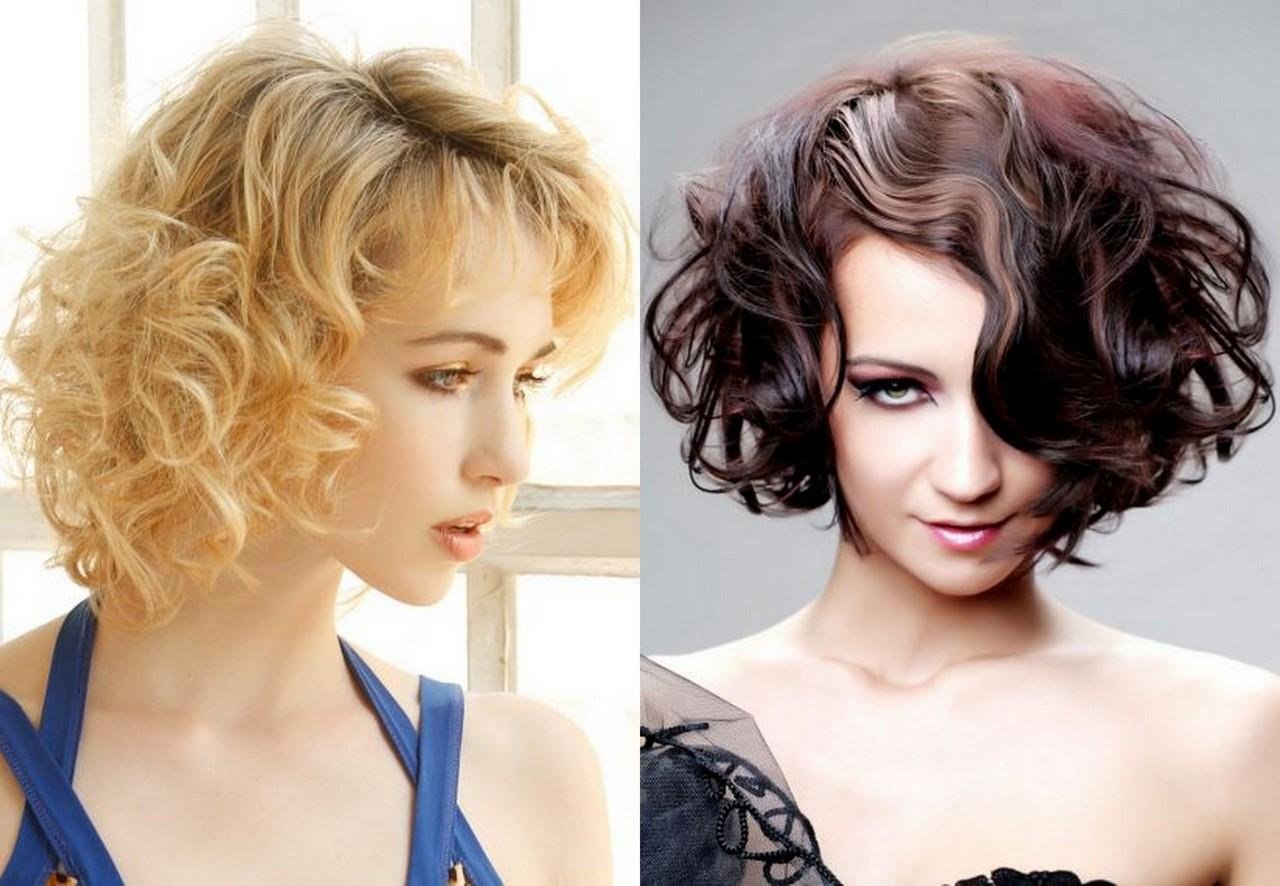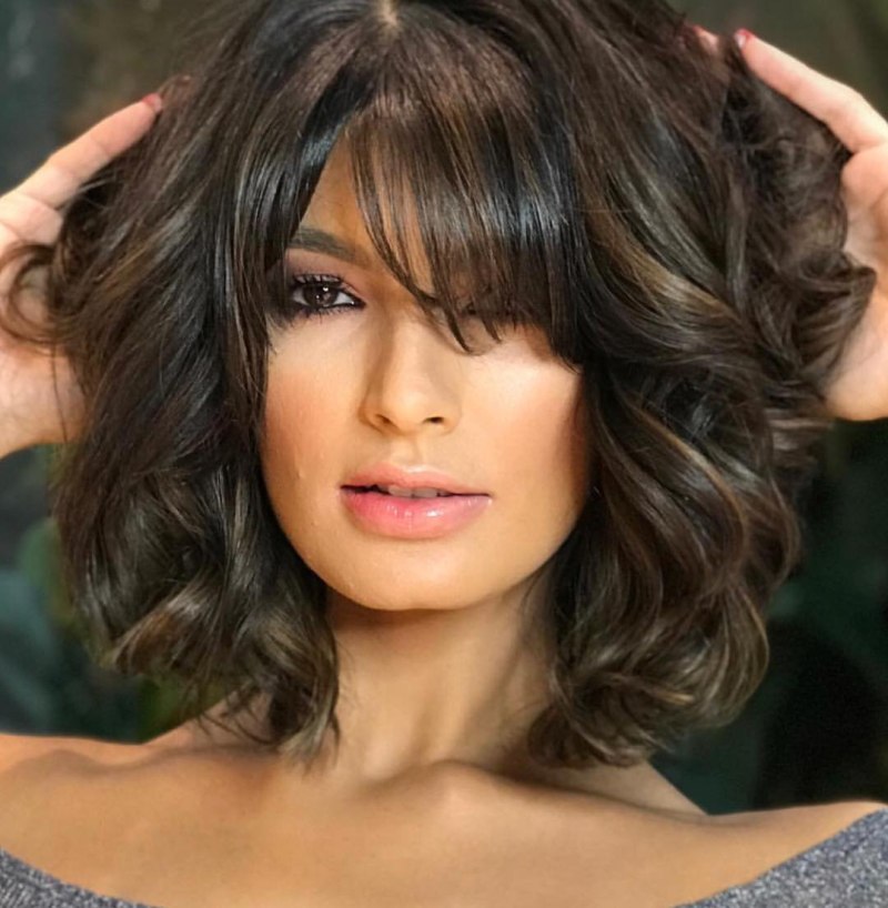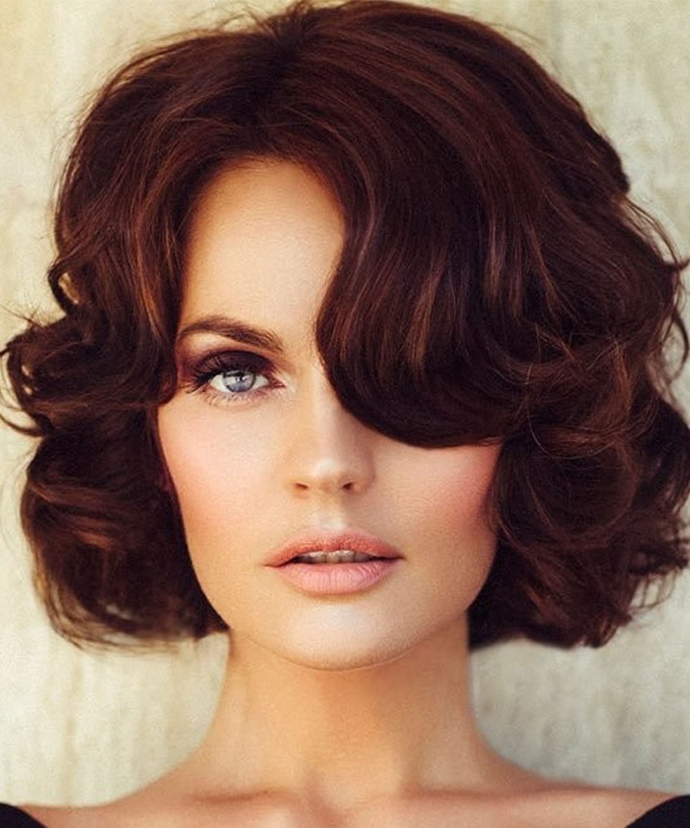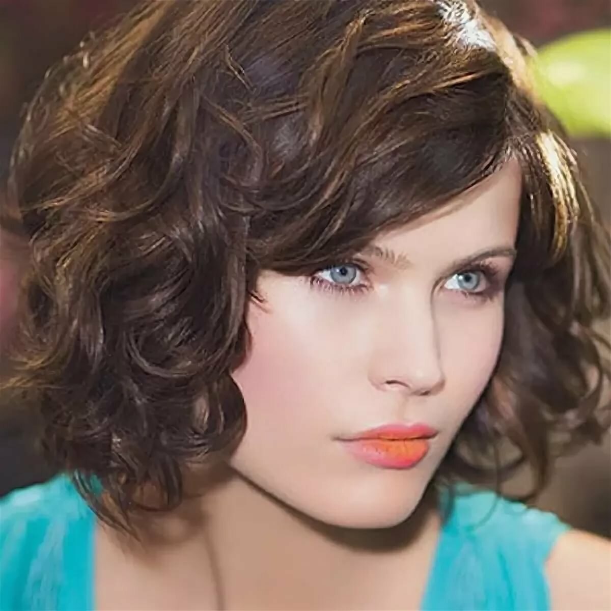 Стрижка Боб-каре на короткие волнистые волосы с челкой