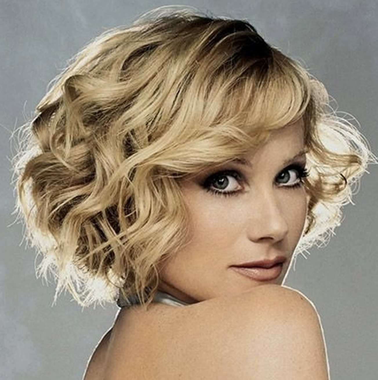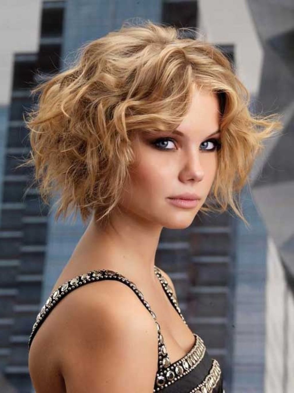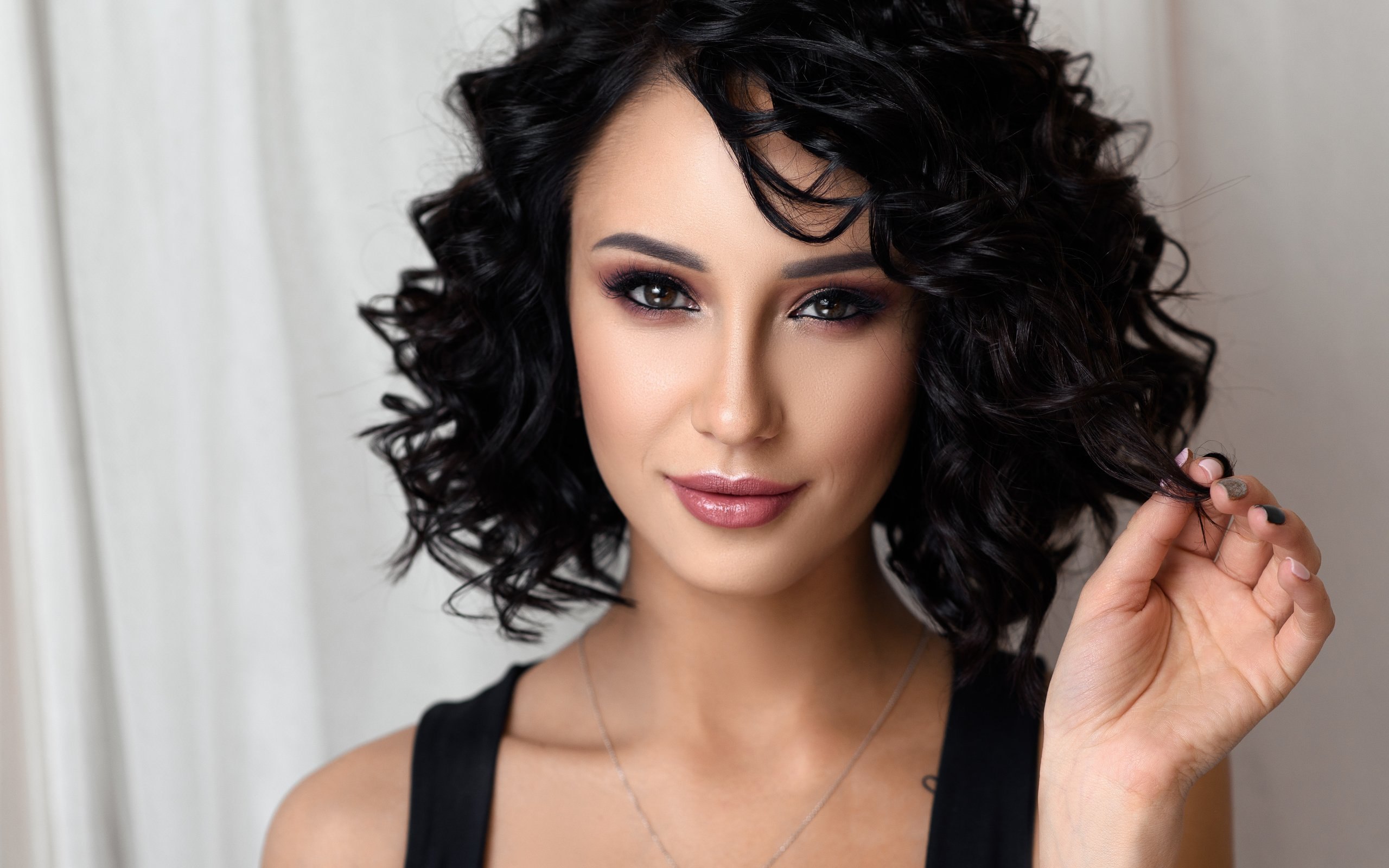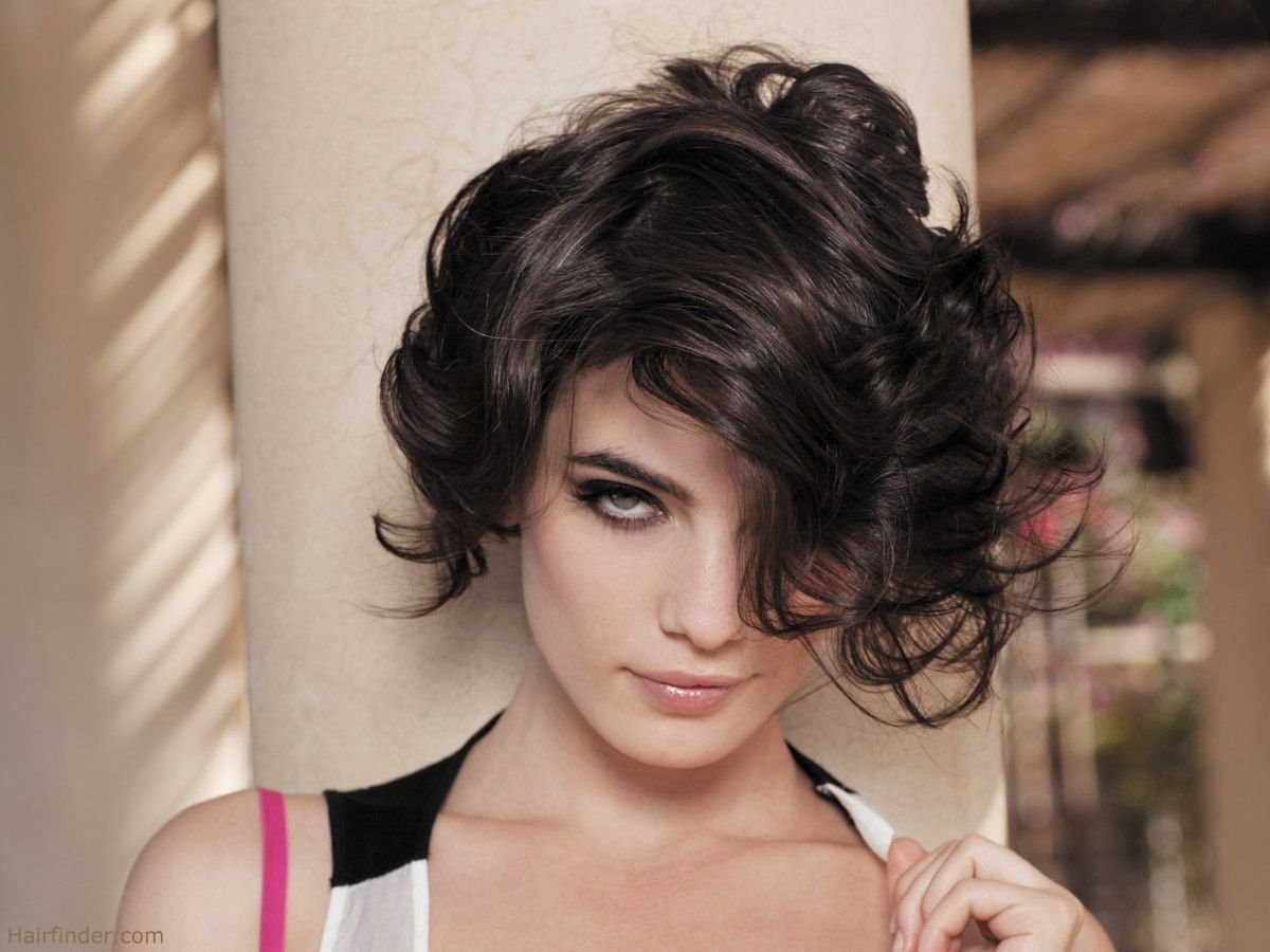 Стрижка Боб-каре на короткие волнистые волосы с челкой