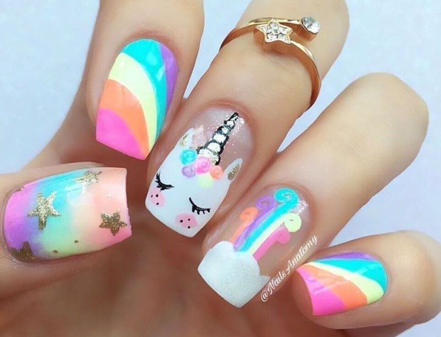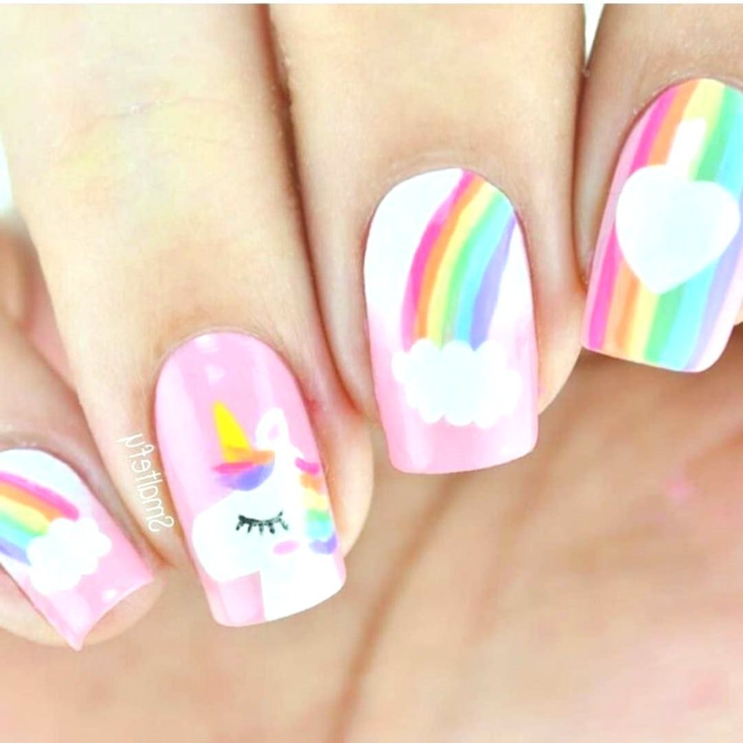 Летний маникюр с единорожками