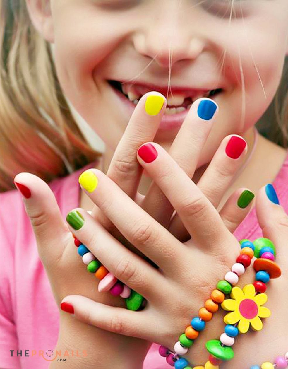 Детский разноцветный маникюр