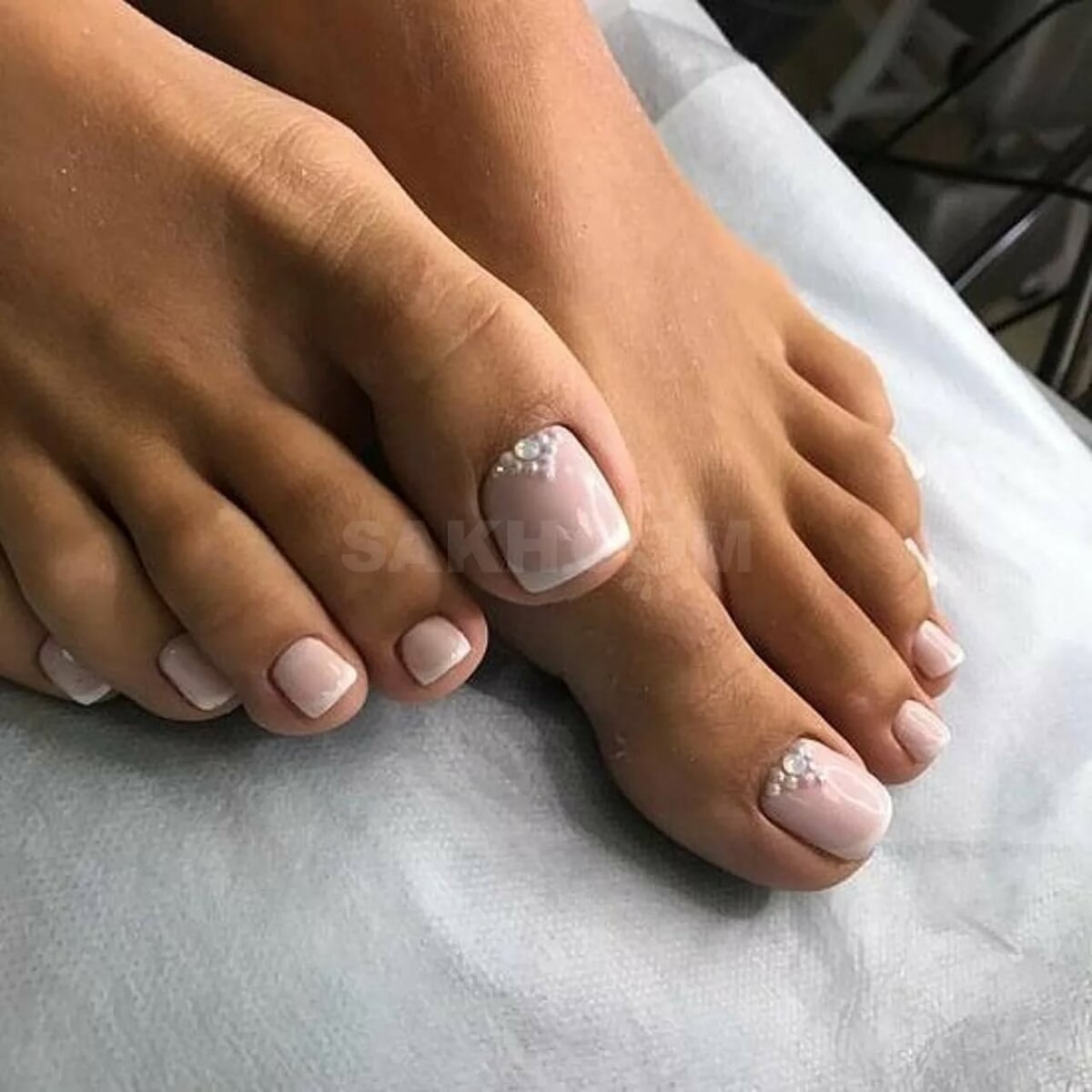 Французский маникюр на ногах