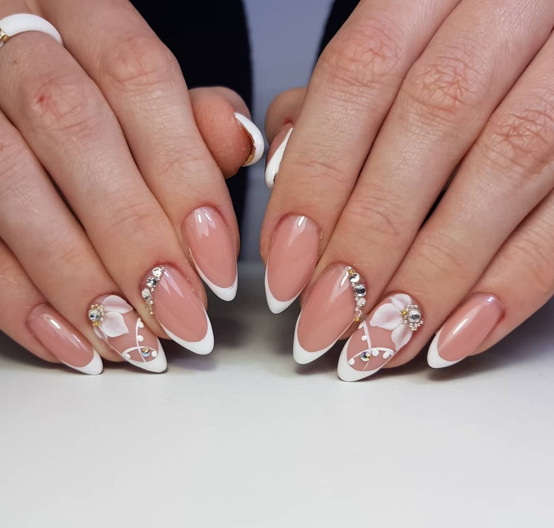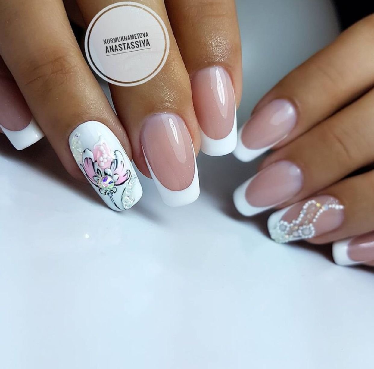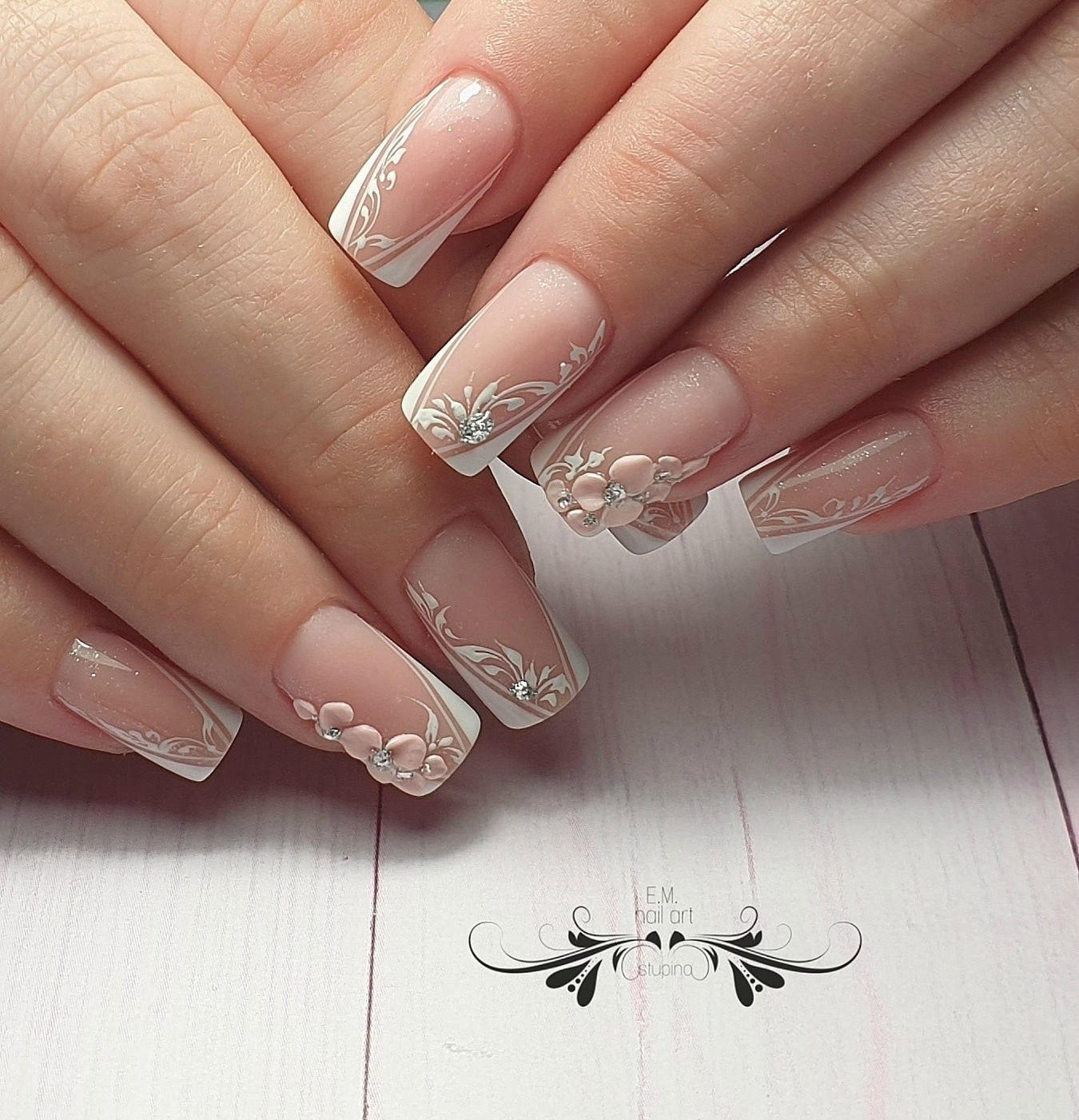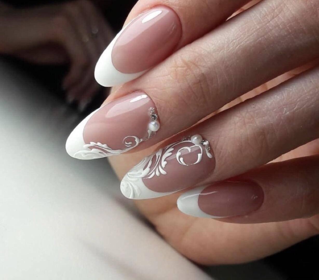 Дизайн ногтей на базе молочной на свадьбу маме невесты